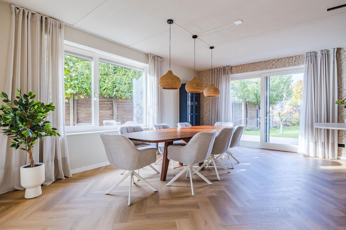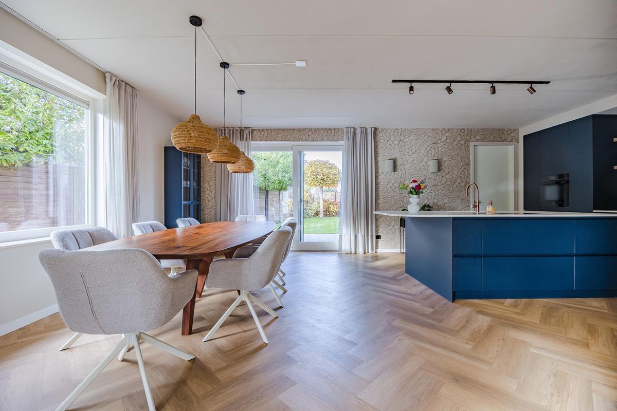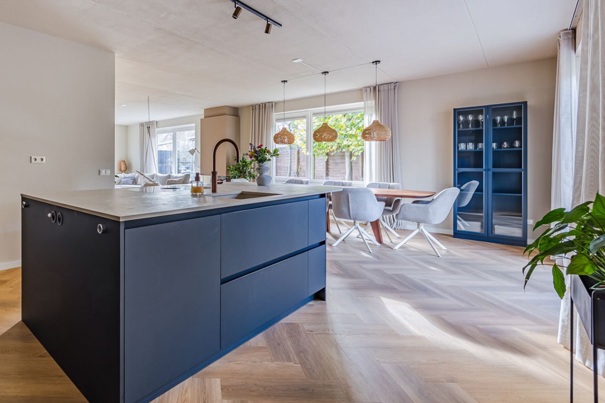 De luxe keuken met visgraat pvc vloer en gestucte wanden is zo goed als nieuw (2024) en beschikt over een schitterend kook/spoeleiland en een koffiecorner. De keuken is voorzien van Dekton natuurstenen aanrechtblad en inbouwapparatuur: Bora inductie kookplaat met geïntegreerde afzuigkap, oven met stoomfunctie, quooker, koelkast, vriezer en een vaatwasser. Vanuit de keuken heeft u zicht op de heerlijke leeftuin. Via de keuken heeft u toegang tot de bijkeuken.
