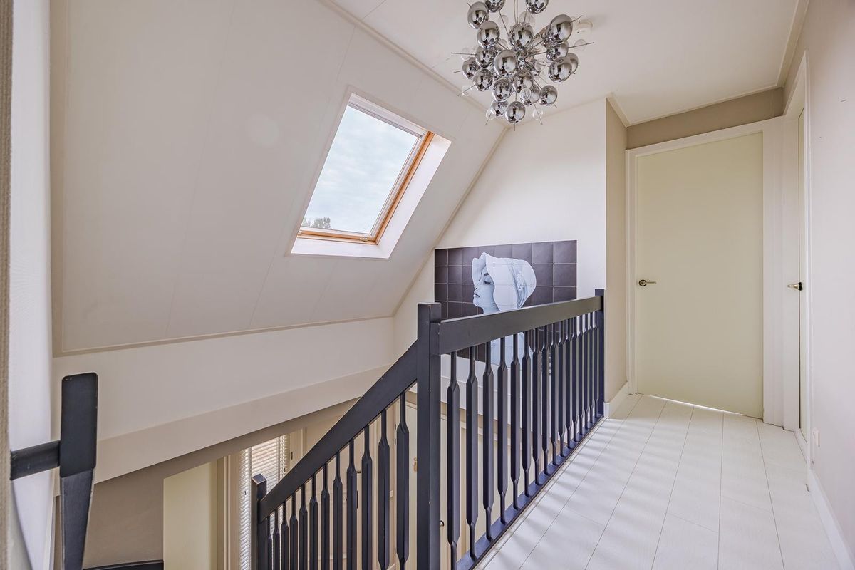 Via de trap komt u op de lichte overloop van de 1e verdieping. De overloop beschikt over een groot dakraam, praktische dress-ruimte en een vlizotrap naar de berg- / speelzolder.