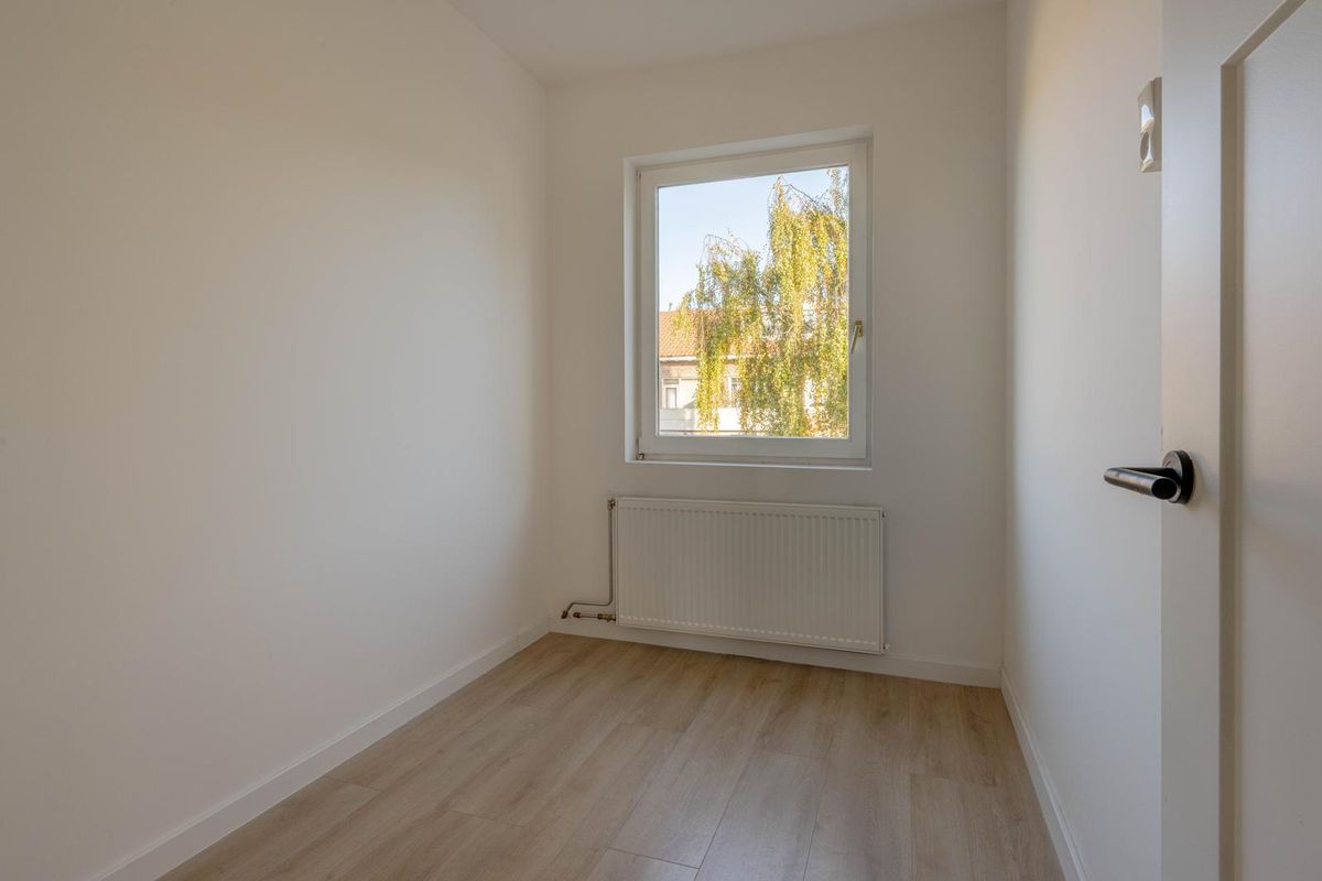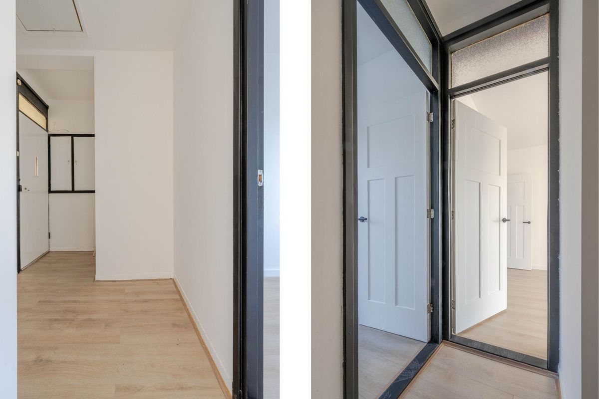 De lichte woonkamer vormt het hart van de woning en staat in open verbinding met de moderne keuken in nette opstelling. Aan de achterzijde bevinden zich twee slaapkamers, waarvan één directe toegang biedt tot het balkon. De stijlvolle badkamer is eveneens volledig vernieuwd en voorzien van een inloopdouche, wandtoilet en modern sanitair. In de onderbouw beschikt het appartement over een eigen berging, ideaal voor het stallen van fietsen of extra opslag.