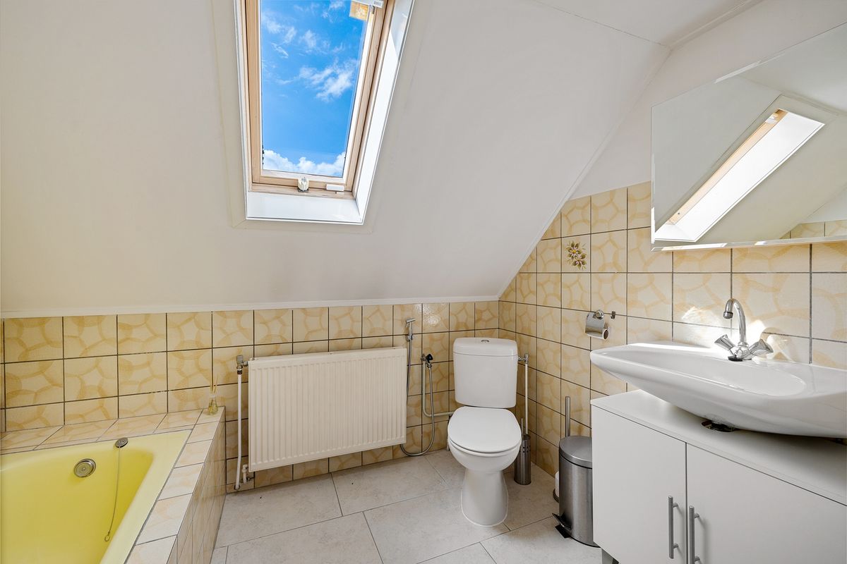 Drie slaapkamers op de verdieping en een badkamer met bad, wastafel en derde toilet.