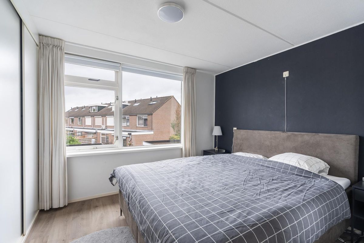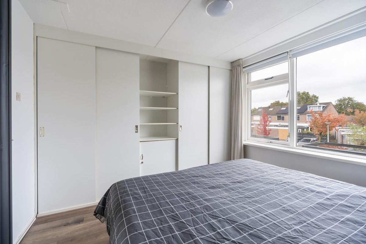 Op de eerste verdieping bevinden zich twee royale slaapkamers, waarvan één aan de voorzijde en één aan de achterzijde. De kamer aan de voorzijde is voorzien van een vaste kast, terwijl de kamer aan de achterzijde beschikt over een praktische inbouw schuifkastenwand.