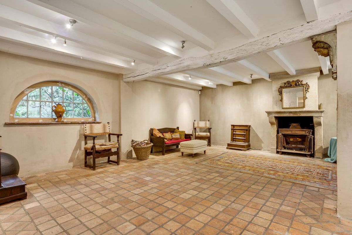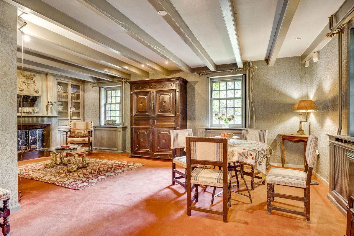 Binnen ademt de boerderij dezelfde warmte en eigenheid. Een L-vormige woonkamer met open haard en bibliotheek, een eetkamer met fijne houtkachel, een keuken met karakter en een praktische bijkeuken met douche. De sfeervolle eetkamer met trapopgang en de benedenruimte die ooit dienst deed als showroom van meubels en stoffen, bieden volop mogelijkheden voor een nieuwe invulling. Deze voormalig commerciële ruimte heeft een open haard en is volledig voorzien van vloerverwarming. Boven wachten drie ruime slaapkamers en een badkamer op hun nieuwe bewoners.