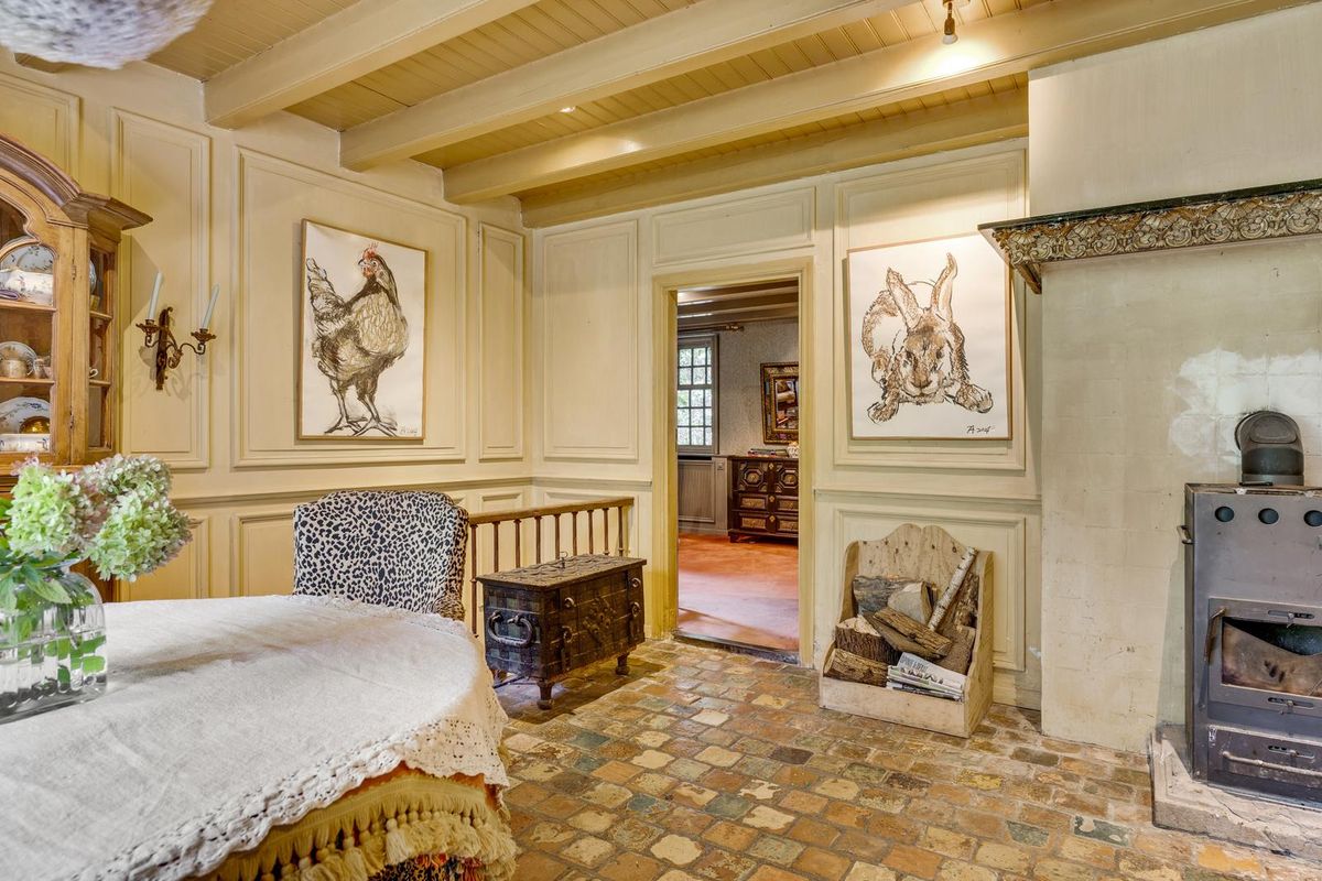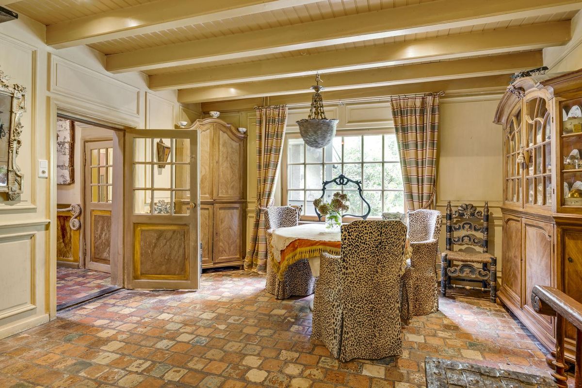 Stel je voor: een oprijlaan die je meeneemt naar een plek die voelt alsof je midden in Frankrijk bent beland. Een woonboerderij met karakter, een erf waar de tijd vertraagt en de geur van hout en bloeiende blauwe regen je tegemoetkomt. Hier woonde jarenlang een Franse antiquair en decorateur. Zijn vakmanschap en liefde voor ambacht zijn in ieder detail voelbaar – van de bijzondere afwerking in de woning tot de sfeervolle binnenplaats en de werkplaats waar hij zijn meubels maakte.