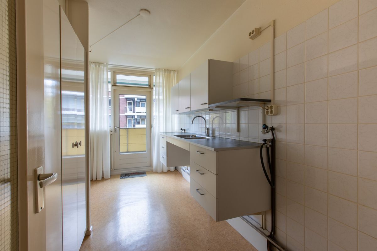 This well-maintained but dated 3-room apartment of 76 m² is situated on the second floor in a quiet, sheltered location and comes with two balconies and a private storage unit in the basement. It is conveniently located near public transport stop De Dreef, serving tram lines 9 (Hollands Spoor, City Centre, and Central Station) and 10 (Scheveningen). There is a shared parking area with a barrier gate, where residents can park their car. Nature lovers will also appreciate this location — the De Uithof nature park is just a 5-minute walk away.