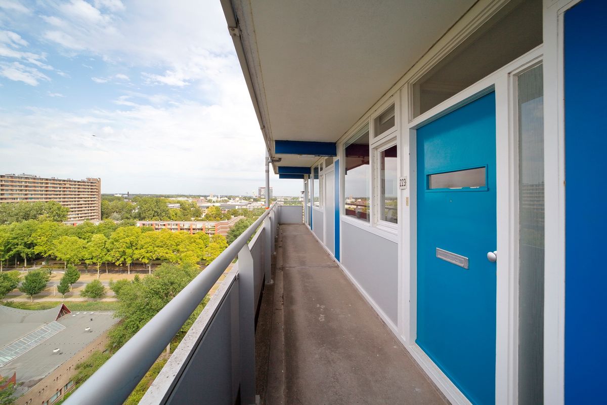 De galerij loopt u af tot het laatste huis, dit is nummer 223. Niemand die langs jouw appartement loopt!