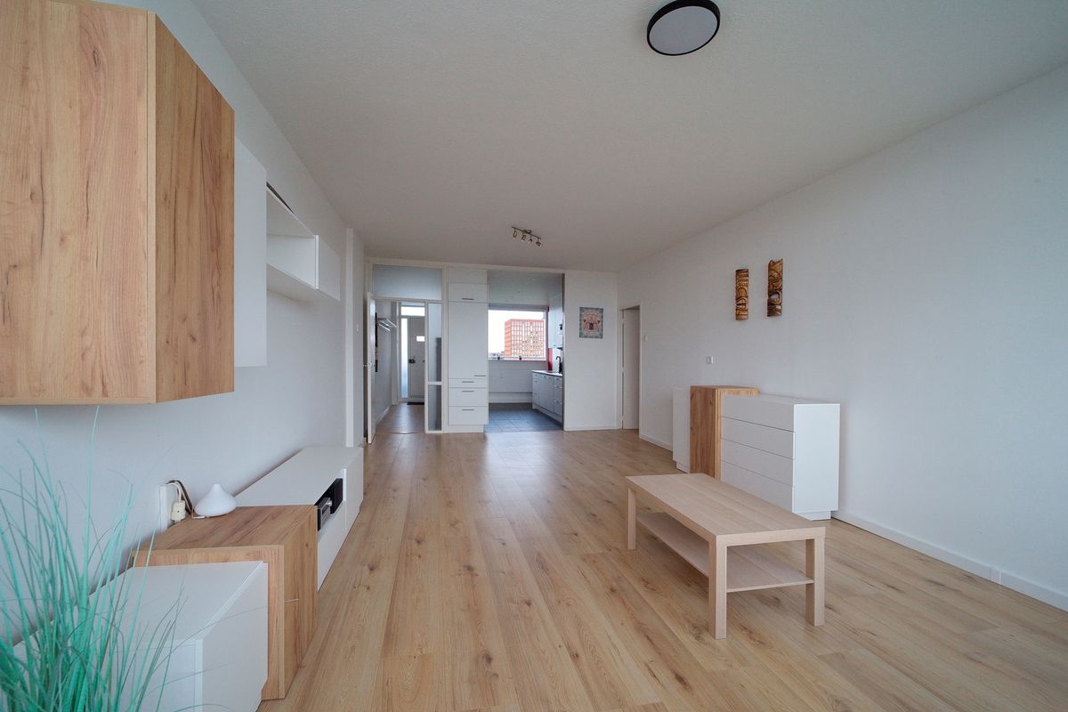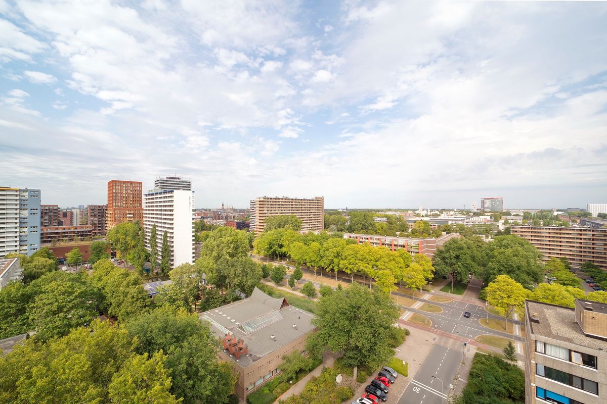 Centraal gelegen tussen winkelcentrum De Hoven en treinstation Delft-Campus treft je dit sfeervolle 4-kamer HOEK-appartement op de 14e verdieping van ca. 108m2 met ruim balkon van 15,5 m2 welke onderdeel is van een gezonde VvE.
