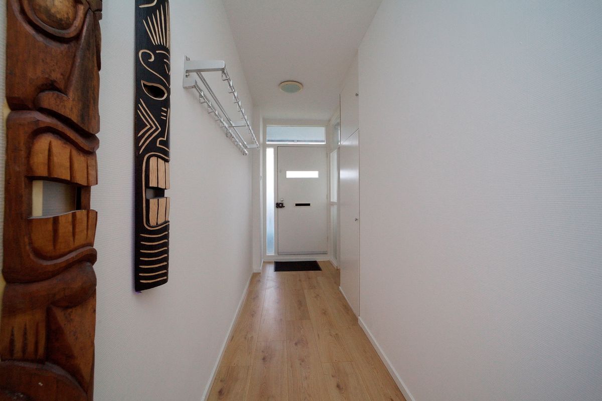 Vanuit de woonkamer biedt de tussenhal toegang tot alle slaapkamers, bergkast en de badkamer.