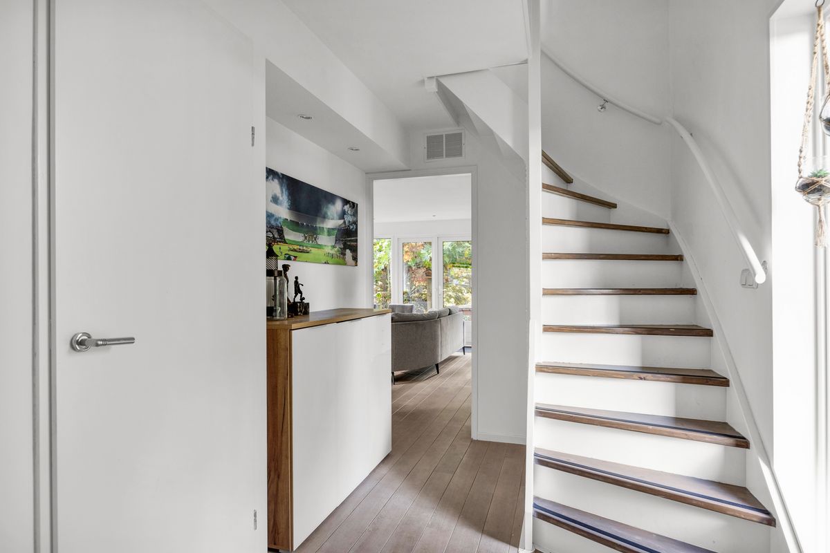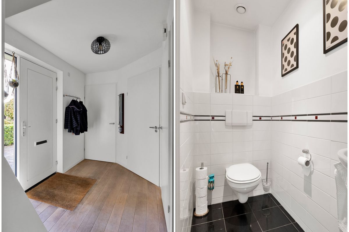 We betreden de woning via de voordeur en komen in de ruime hal met meterkast, trapopgang, toilet en wasruimte/kast met wasmachine- en drogeraansluiting. Via de hal is ook de woonkamer toegankelijk, deze is ruim en tuingericht, via de openslaande deuren stap je zo de fraai ingerichte achtertuin in. De open keuken bevindt zich aan de voorzijde van de woning en heeft een hoekopstelling welke voorzien is van diverse inbouwapparatuur zoals; koelkast, vrieskast, gaskookplaat, afzuigkap, oven en vaatwasser.
