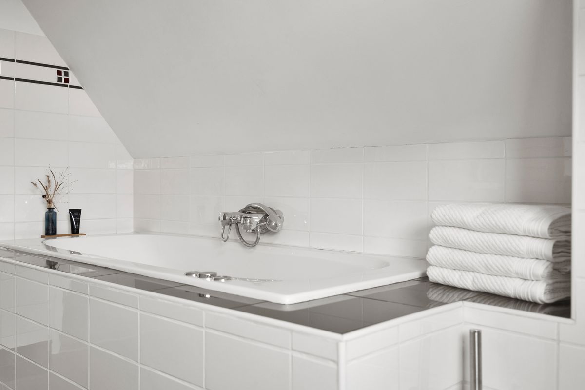 De overloop geeft toegang tot de 3 slaapkamers, waarvan 2 slaapkamers met vaste kasten. De badkamer is voorzien van een ligbad, douche, 2e toilet en dubbele wastafel met meubel.