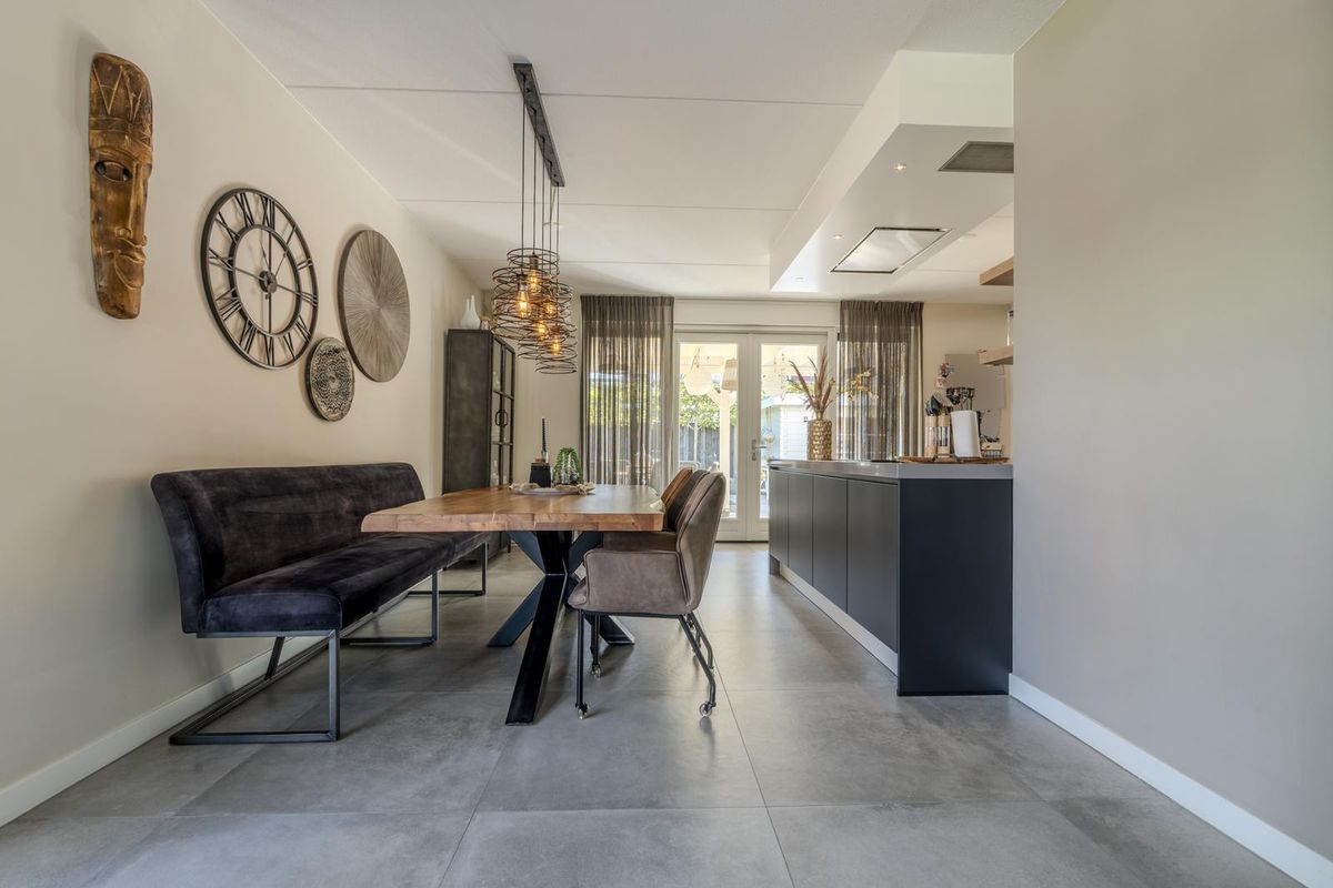Entree met toilet, meterkast, verdeler vloerverwarming en trapopgang, ruime woonkamer met erker, moderne keuken met toegang naar de volledig geïsoleerd bijkeuken (voormalig garage) en openslaande deuren naar de fraai aangelegde tuin welke is voorzien van een overkapping, buitendouche, achterom en vrijstaande houten berging.