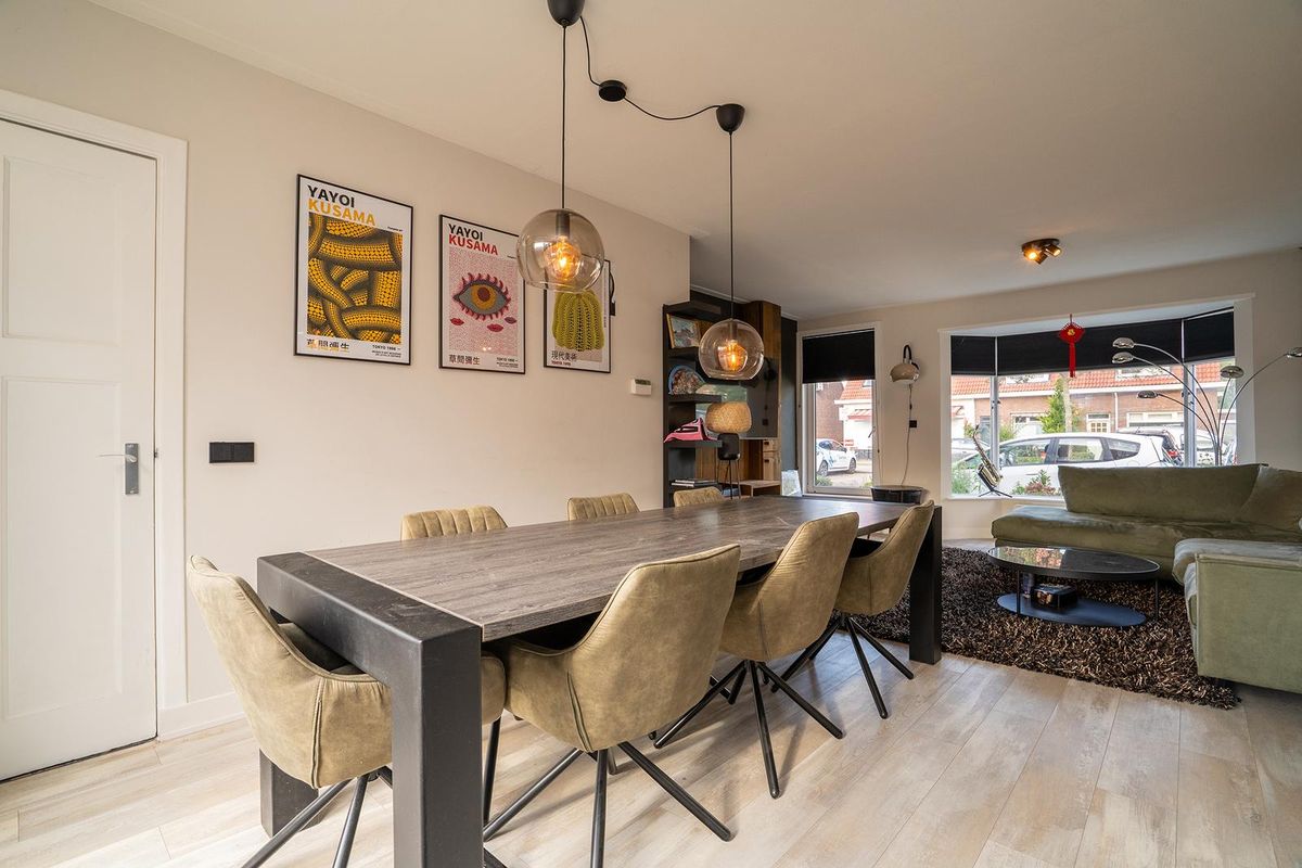 Vanuit de keuken is de woonkamer bereikbaar. Deze is ruim opgezet en geniet van veel lichtinval dankzij de grote ramen aan de voorzijde. De ruimte is sfeervol en biedt voldoende plaats voor zowel een zit- als eethoek.