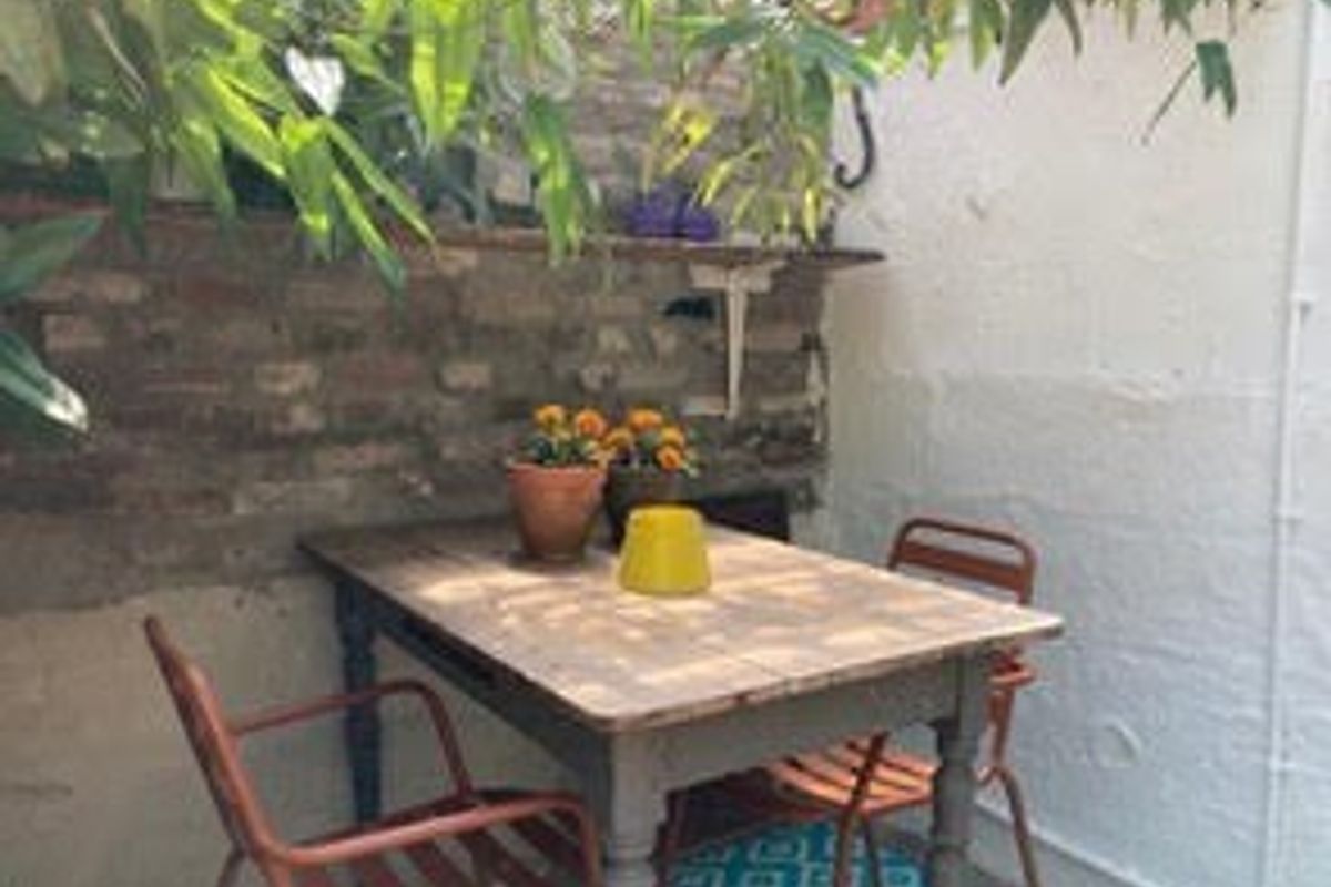 Ruime slaapkamer van 13 m² met toegang tot de tuin 9 m² die ook gedeeltelijk is overdekt.
