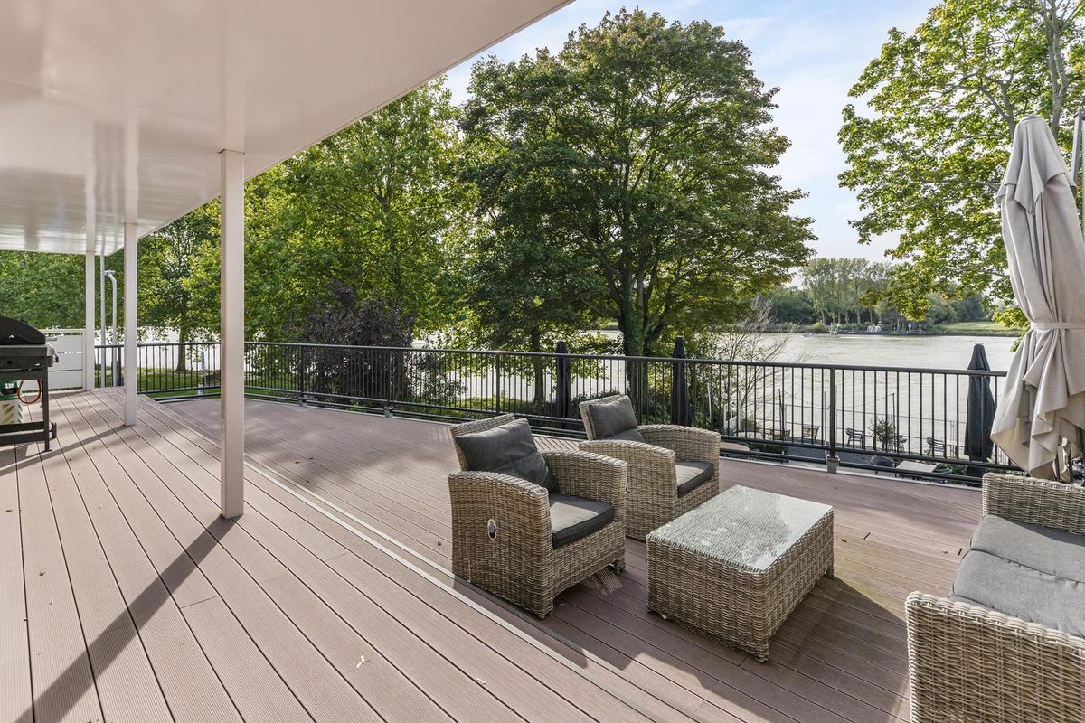 Het terras ligt op het zuiden en hier kan je heerlijk genieten van de mooie omgeving met uitzicht over de rivier.