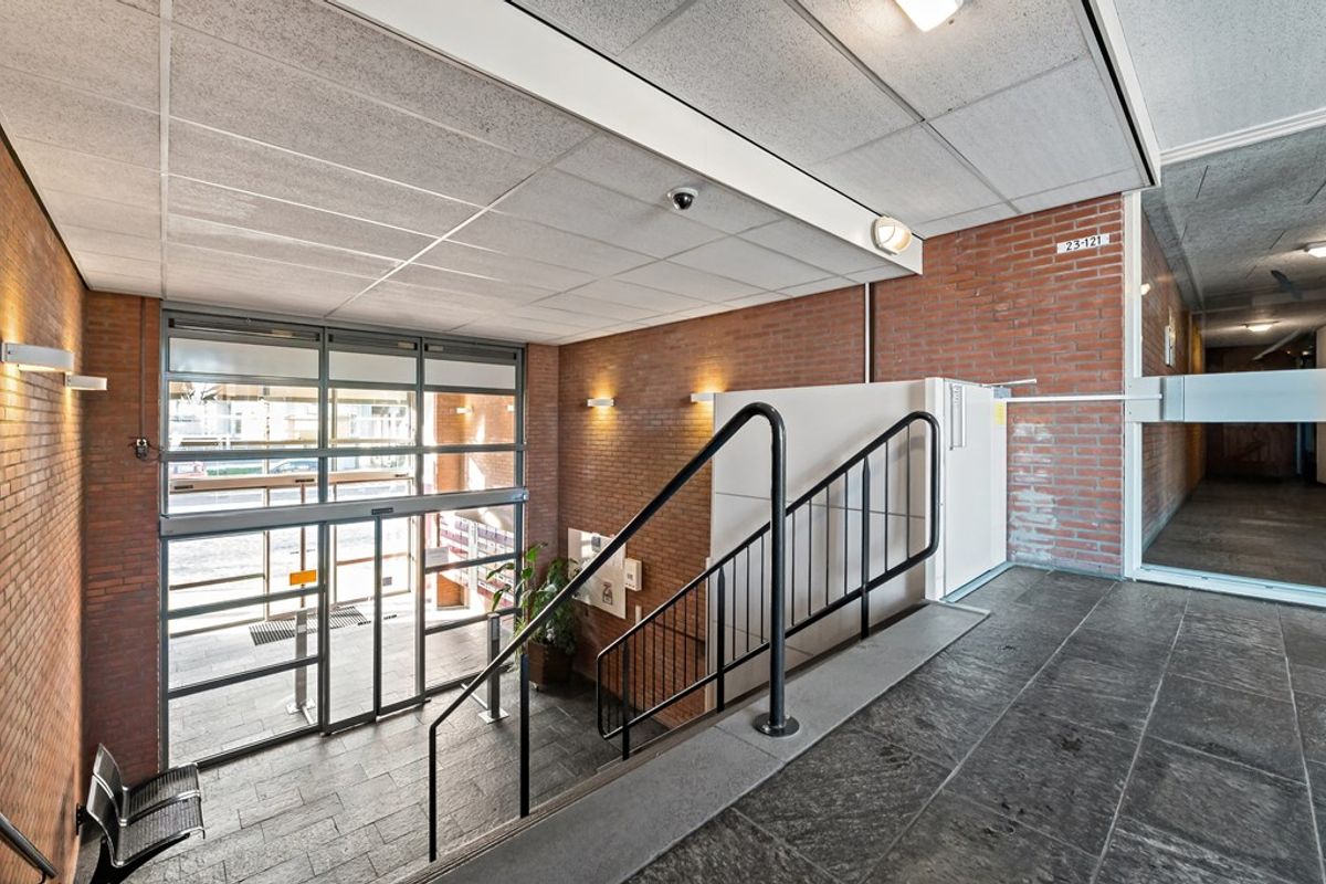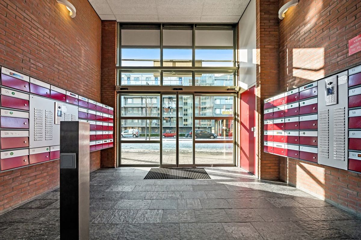 Centrale en verzorgde entree met brievenbussen en bellentableau, trapopgang en lift. Vanuit de centrale hal zijn de individuele fietsenbergingen te bereiken. De berging behorend bij het appartement is voorzien van verlichting en is ruim van formaat. Naast het plaatsen van bijvoorbeeld een stellingkast is hier ook voldoende ruimte voor het stallen van meerdere fietsen. Door middel van een aparte deur aan de achterzijde van het complex komt u op een parkeerterrein.