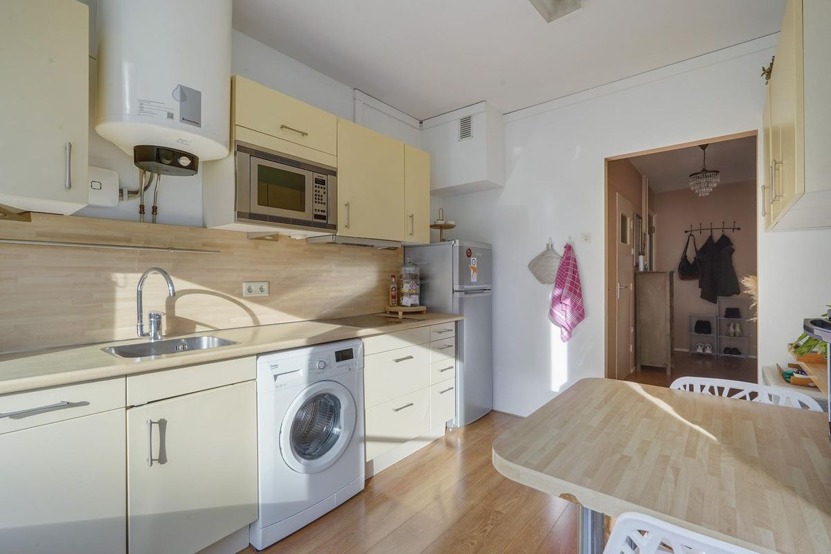 De keuken is verzorgd en beschikt over een moderne inrichting en geeft ook toegang tot balkon. De badkamer heeft een inloopdouche en een wastafelmeubel.