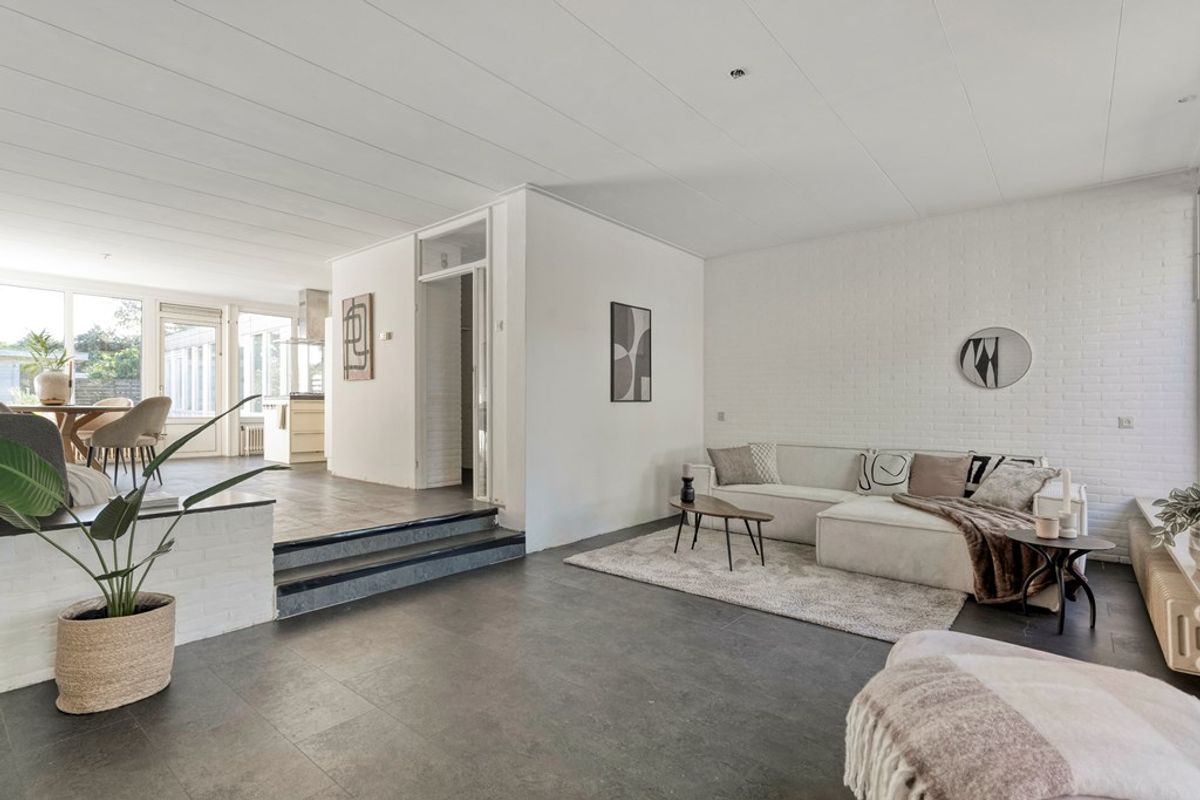 Wat meteen in het oog springt als je binnenkomt, is het speelse niveauverschil tussen de woonkamer en de woonkeuken. Hierdoor krijgt de ruimte nét dat beetje extra sfeer. Voor de gezelligheid kun je samen koken, borrelen of lekker hangen op de bank zonder op elkaars lip te zitten, maar het contact blijft toch behouden.