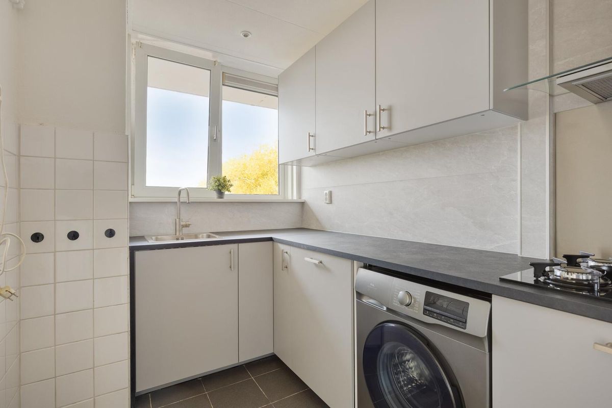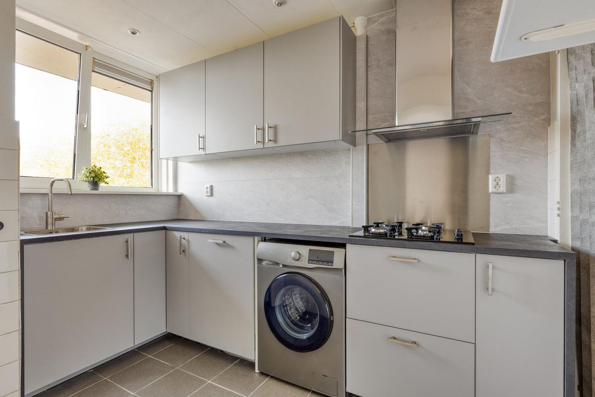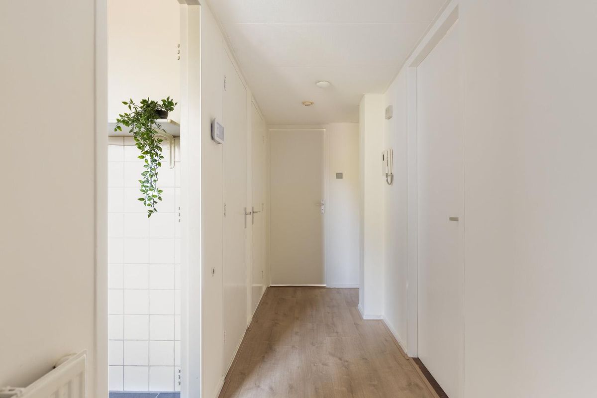 Het appartement is praktisch ingedeeld en keurig afgewerkt met o.a. strakke wandafwerking en in de kamers een mooie nieuwe laminaatvloer. De lichte woonkamer bevindt zich aan de voorzijde en biedt toegang tot het zonnige balkon op het zuiden. De moderne keuken is dit jaar volledig gerenoveerd en voorzien van alle gemakken, waaronder zelfs een inbouwwasmachine. Ook de badkamer is in 2025 vernieuwd, waardoor je hier zonder extra werk direct kunt intrekken. Het appartement is voorzien van kunststof kozijnen met dubbele beglazing. De verwarming loopt via een eigen C.V.-combiketel. In de onderbouw bevindt zich een eigen berging, ideaal voor extra opslagruimte.
