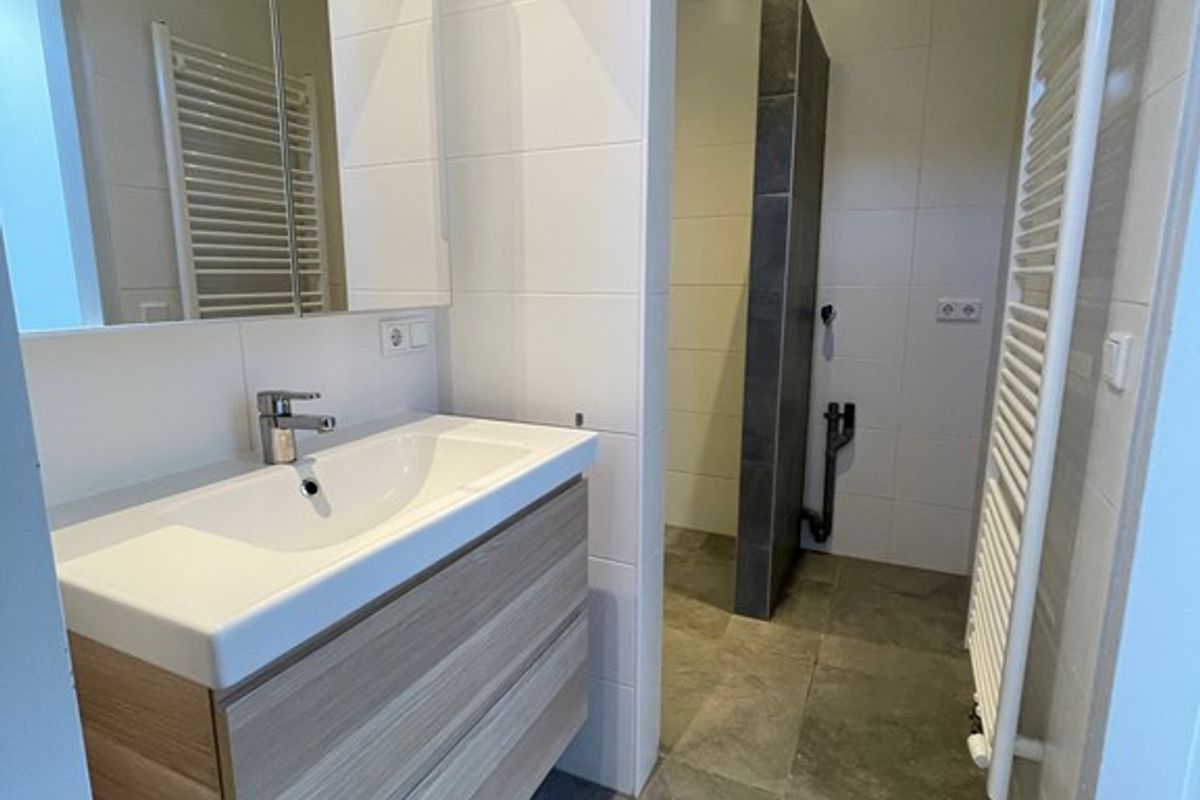 Entree op de 1e verdieping. Het woongedeelte is royaal opgezet met aan de achterzijde een groot dakterras. De luxe open keuken is voorzien van diverse apparatuur oa een met een kookplaat, afzuigkap, magnetron/oven, vaatwasser. De badkamer ligt aan de voorzijde heeft een douche, wastafel en toilet en ruimte voor de wasmachine en droger.