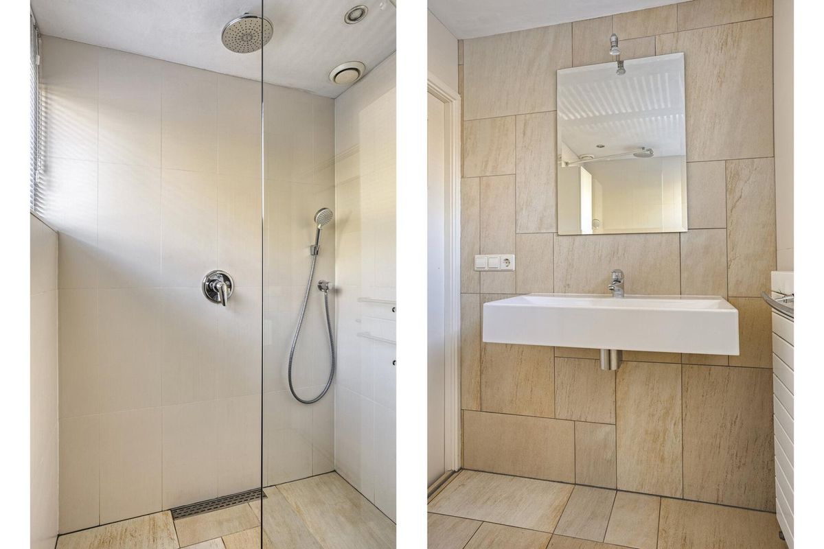 Aan de voorzijde van de woning vindt u een ruime slaapkamer met eigen wastafelmeubel en toegang tot het balkon. Ook de badkamer bevindt zich hier, voorzien van een wastafel met spiegel en een comfortabele inloopdouche. Daarnaast beschikt deze verdieping over een separaat toilet. Aan de achterzijde bevinden zich nog een extra slaapkamer en de royale master bedroom met praktische ingebouwde kledingkast. De gehele eerste verdieping is eveneens voorzien van stijlvolle spotjes.