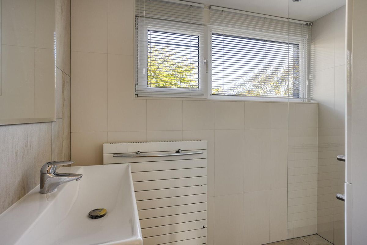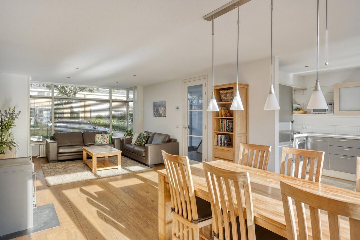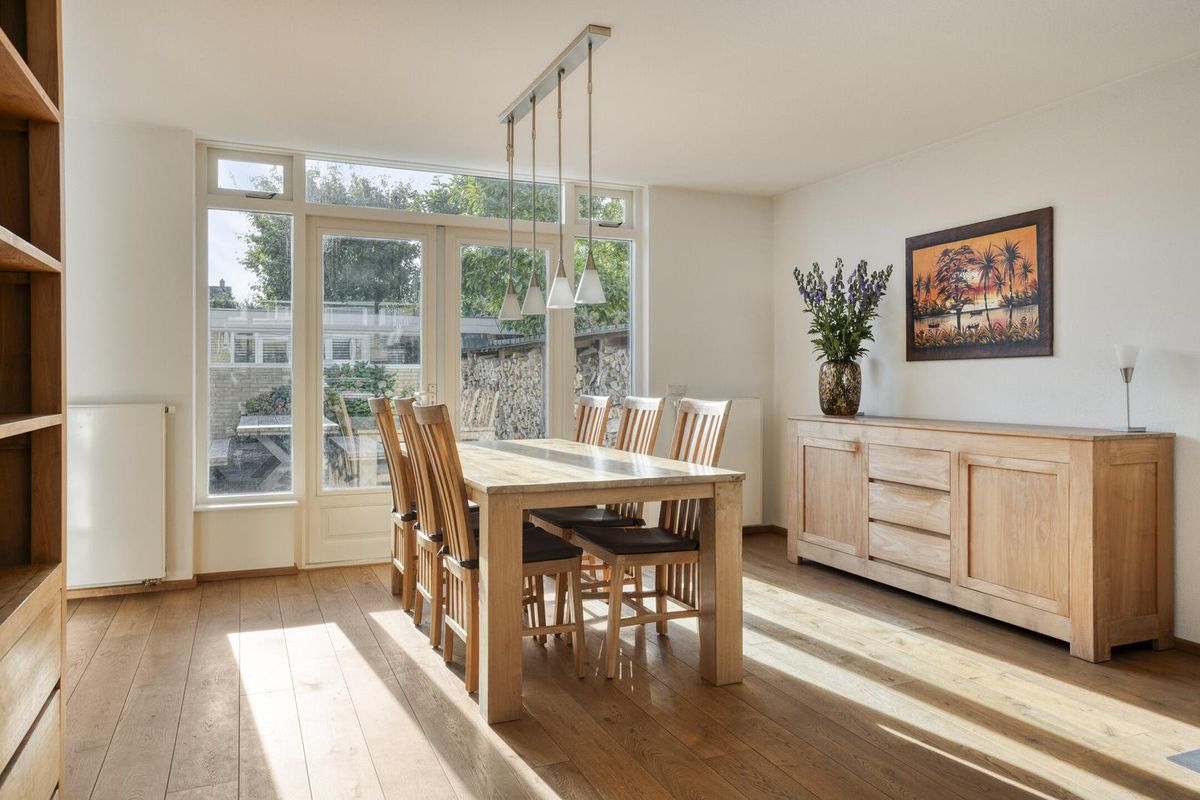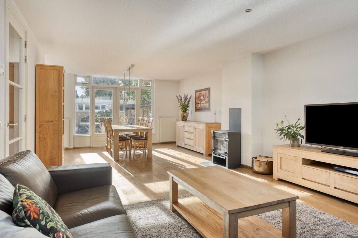 Via de entree komt u in de hal, waar zich de meterkast, een handige trap-/voorraadkast en het toilet met fontein bevinden. Vanuit de hal loopt u door naar de ruime woonkamer, die dankzij de erker heerlijk licht en uitnodigend aanvoelt. De open haard vormt hier een sfeervol middelpunt, perfect voor gezellige avonden. Grenzend aan de woonkamer vindt u de eetkamer, met openslaande deuren naar de tuin. Hierdoor lopen binnen en buiten op een natuurlijke manier in elkaar over. De open keuken is praktisch én gezellig ingedeeld en voorzien van een 4-pits gasfornuis met afzuigkap, een vaatwasser en veel opbergruimte. Ook vanuit de keuken heeft u directe toegang tot de tuin, ideaal voor een zomerse barbecue of een ontspannen ochtendkoffie in het zonnetje. De markiezen bieden hierbij niet alleen aangename schaduw op warme dagen, maar geven de woning ook extra charme en karakter. De gehele benedenverdieping is afgewerkt met een prachtige eikenhouten vloer, die warmte en luxe toevoegt, en is bovendien voorzien van stijlvolle spotjes, wat bijdraagt aan een moderne en sfeervolle uitstraling.