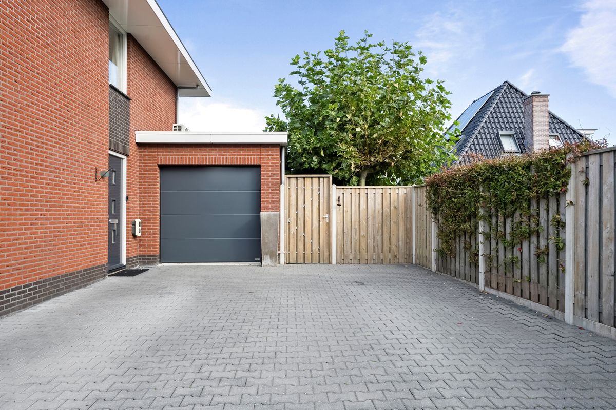 De inpandige garage heeft een elektrisch bedienbare, geïsoleerde garagedeur (vernieuwd in 2023). De brede oprit biedt ruimte voor minimaal twee auto’s, en achter de woning is bovendien nog een extra parkeerplaats aanwezig. Aan de voorzijde, ter hoogte van de oprit, is een elektrisch oplaadpunt geplaatst.