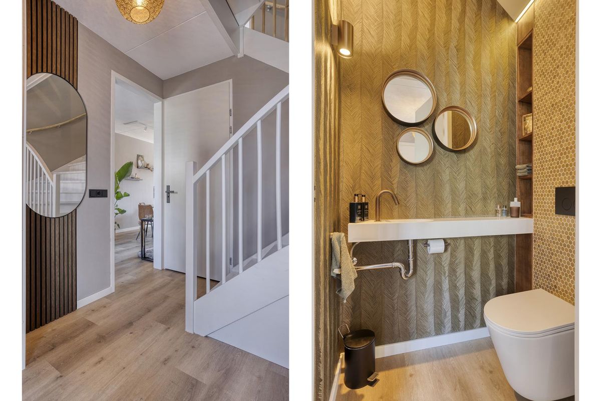Begane grond De woning beschikt over een tuingerichte woonkamer, een handige bijkeuken met witgoedaansluitingen en toegang tot de tuin via een enkele deur. De open keuken is luxe uitgevoerd en voorzien van diverse inbouwapparatuur, waaronder een inbouwkoelkast, vriezer, Quooker, 6-pits Falcon fornuis met twee ovens en grill, afzuigkap en luxe vaatwasmachine. Het toilet met fontein is eveneens hoogwaardig afgewerkt. De gehele benedenverdieping is voorzien van gestucte wanden, en een PVC-vloer met vloerverwarming. De woning is tevens voorzien van een waterontharder (geplaatst in 2024).