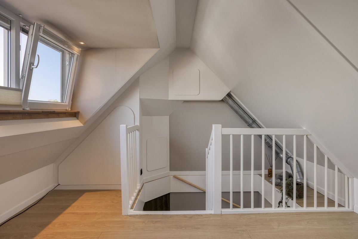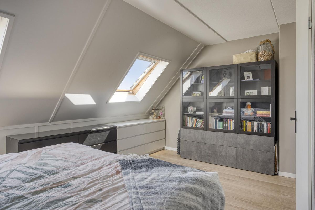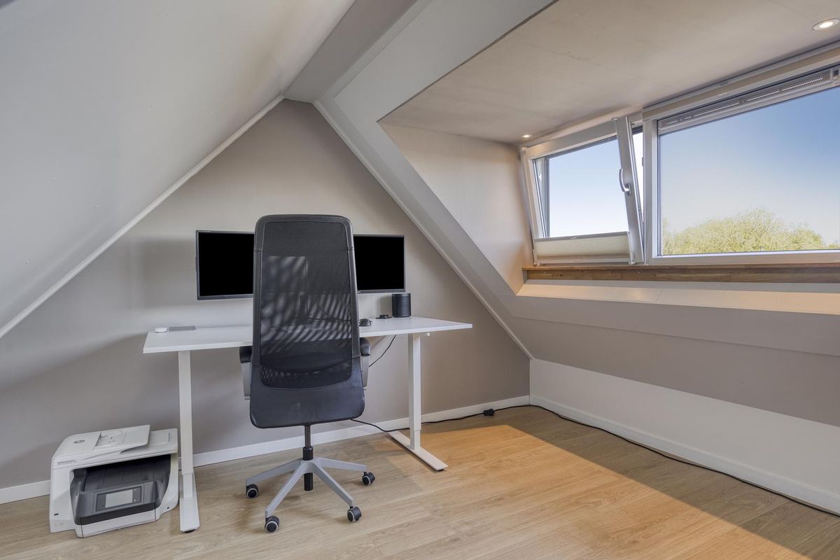 Tweede verdieping Bereikbaar via een vaste trap, biedt de zolderverdieping extra ruimte dankzij een kunststof dakkapel over de volledige breedte. De zolder is voorzien van een laminaatvloer met vloerverwarming en een vaste kast waarin de HR-combiketel en centrale (automatisch geregeld) luchtafzuiging is weggewerkt.