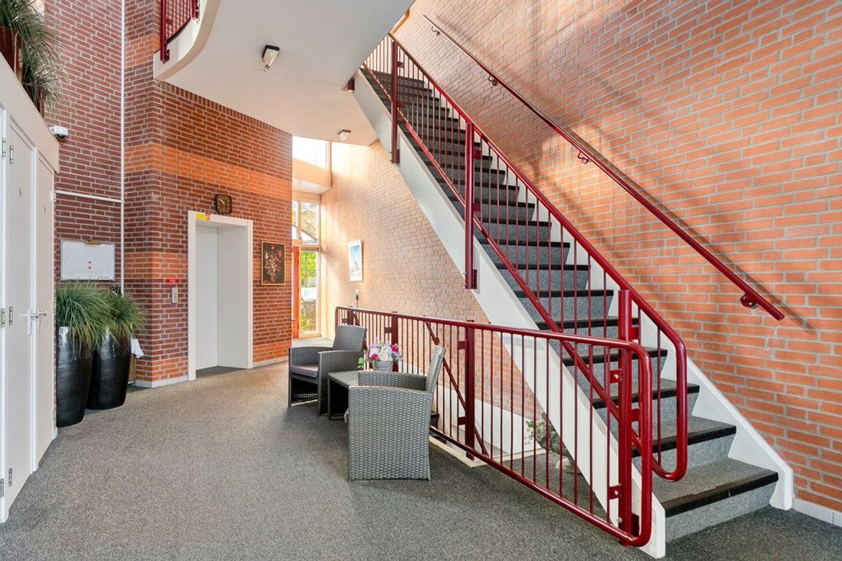Bij de centrale entree van dit kleinschalige appartementencomplex bevinden zich de brievenbussen en de videofoon. Vanuit de verzorgde hal bereikt u via de lift of de trapopgangen zowel de kelder als de twee verdiepingslagen. In de kelder beschikt u over een afgesloten berging met elektra.