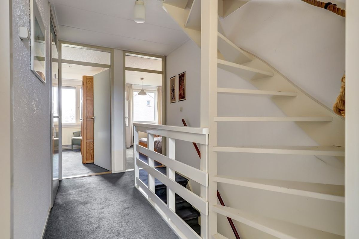 Via de entree bereik je de hal met toilet, meterkast en trapopgang. De lichte woonkamer voelt ruim aan dankzij de brede opzet, het speelse niveauverschil en de grote raampartijen. Een heerlijke plek om te ontspannen!