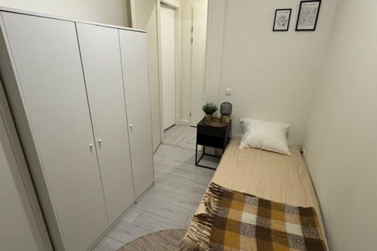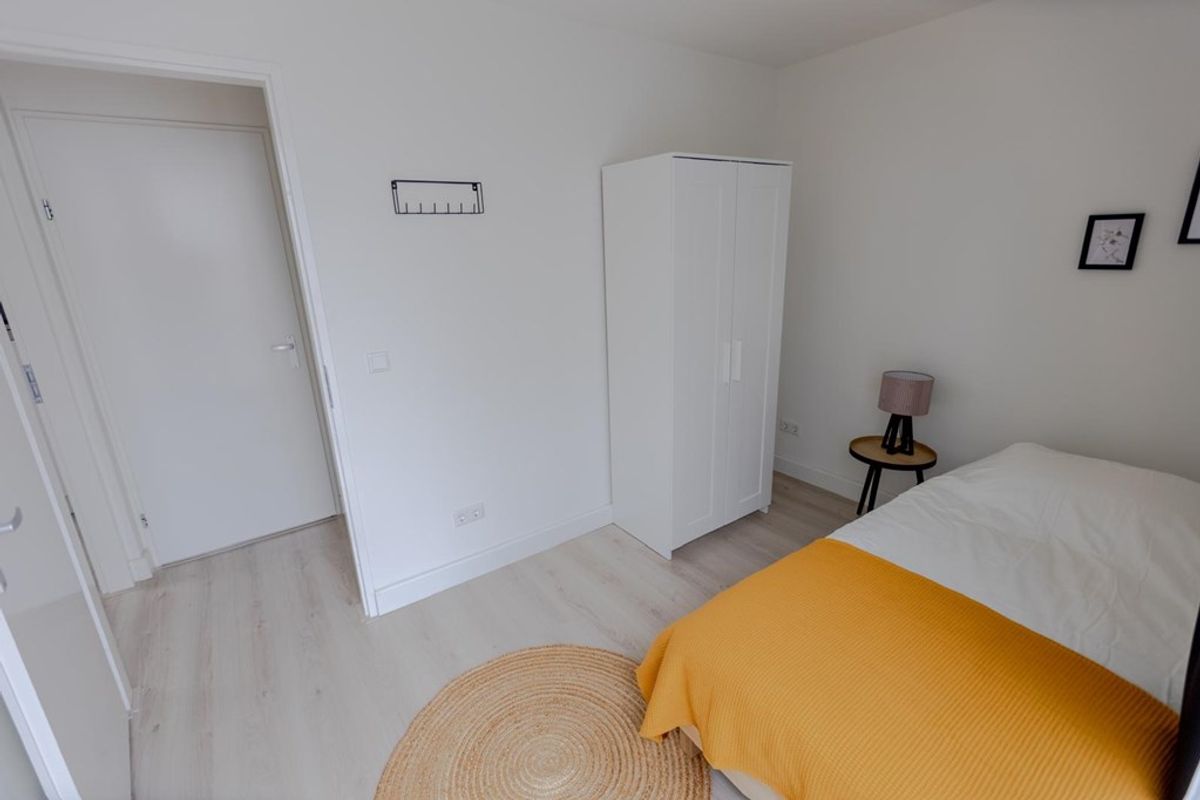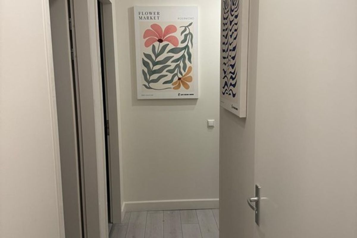 Entree, ruime woonkamer (22 m2) met open keuken voorzien van inductieplaat, afzuigkap, koelkast met vriesvak, combimagnetron en een vaatwasser. Het appartement heeft 2 slaapkamers van 12 en 7 m2 en een berging van 5 m2. De badkamer is voorzien van een vaste wastafel en een douche. Er is een afzonderlijk toilet. Er is een wasmachine aanwezig.