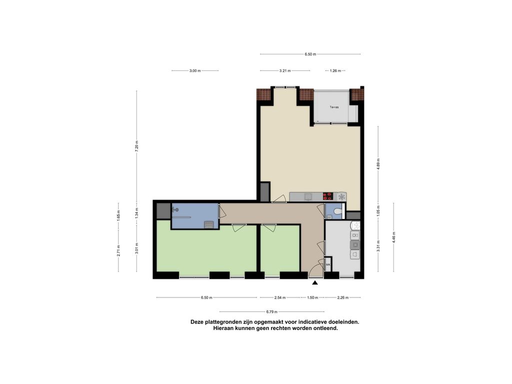 Royale leefruimte: Een ruime woonkamer en keuken met volop indelingsmogelijkheden, twee slaapkamers en een badkamer.