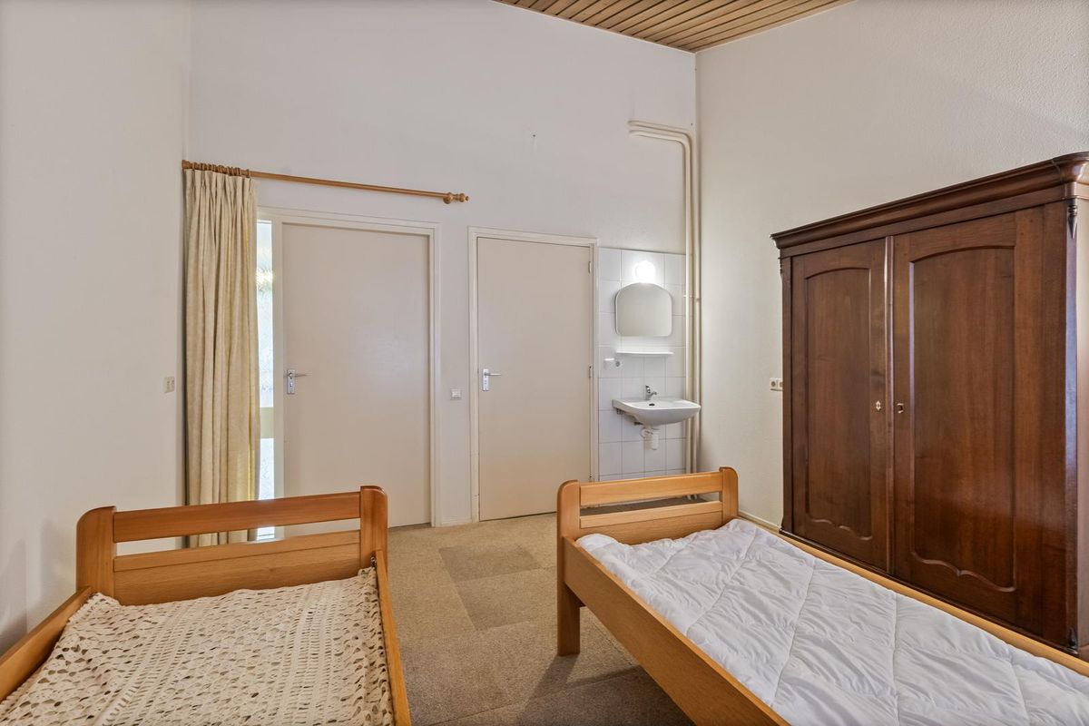 Via de vaste trap in de hal bereik je de eerste verdieping. Hier vind je een tweede slaapkamer met een wastafel met warm en koud water, ideaal als logeerkamer of werkkamer. Verder beschikt de verdieping over een technische ruimte, waar de cv-installatie en het witgoed is geplaatst. Deze ruimte biedt tevens extra plek voor opslag. Daarnaast is er een separate bergruimte, die praktisch is in te richten voor koffers, seizoensspullen of andere benodigdheden die je niet dagelijks nodig hebt.