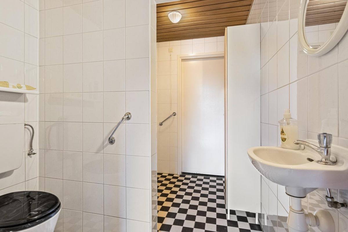 Het echte pluspunt van deze woning is dat er op de begane grond een royale slaapkamer én een badkamer aanwezig zijn. Dit maakt de woning uitermate geschikt voor gelijkvloers wonen. De slaapkamer is ruim van opzet en biedt voldoende plaats voor een tweepersoonsbed en kastruimte. Dankzij de directe verbinding met zowel de woonkamer als de badkamer is dit een zeer praktische en comfortabele plek. De badkamer en toiletruimte vormen samen één geheel, maar zijn slim afgescheiden met een scheidingswand. Hierdoor geniet je van extra comfort en privacy. De badkamer is voorzien van een ruime inloopdouche, een wastafel en een staand toilet.