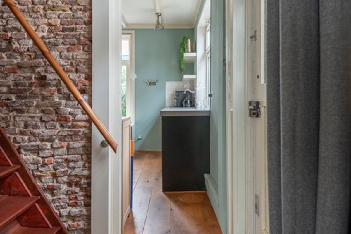 De entree met een compacte centrale hal, met leuke details, is voorzien van een houten vloer, heeft wanden van “ruw” metselwerk met een trap naar de afsluitbare eerste verdieping. De hal geeft enerzijds toegang tot de woonkamer aan de straatzijde gelegen en anderzijds toegang tot een heerlijk ruime separate woonkeuken aan de tuinzijde gelegen.