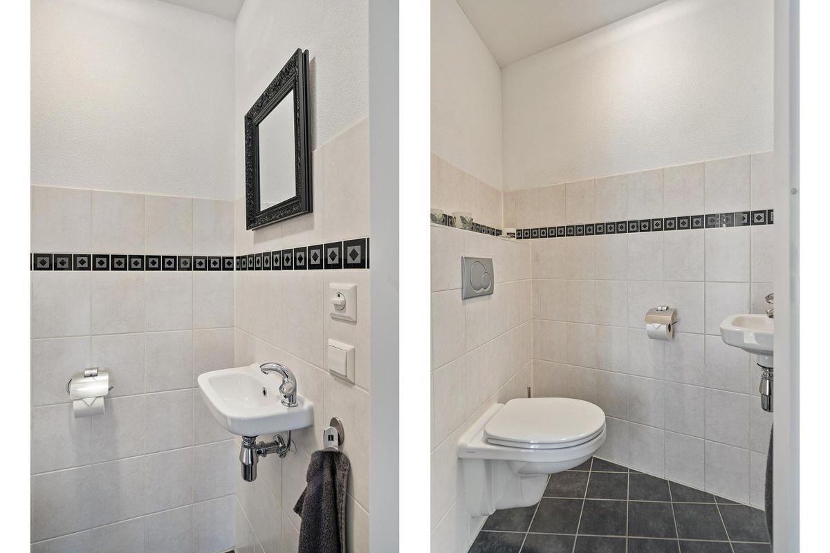 De ruime en lichte overloop geeft toegang tot drie mooie slaapkamers, stuk voor stuk prima van formaat en met een prettige sfeer. De luxe badkamer voelt aan als een privéspa: voorzien van een modern wastafelmeubel, een vrijhangend closet en een royale inloopdouche waar je met z’n tweeën comfortabel kunt douchen.
