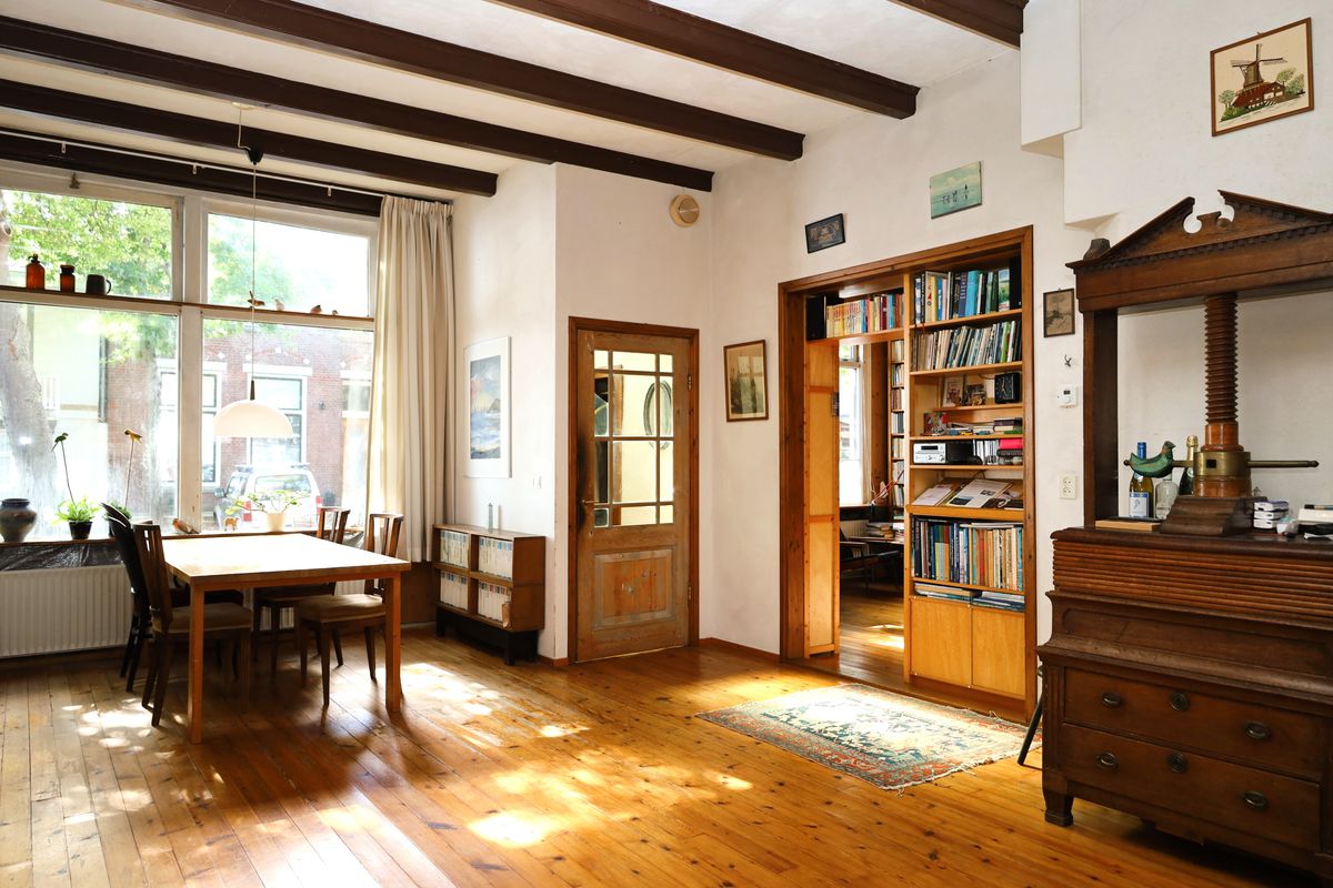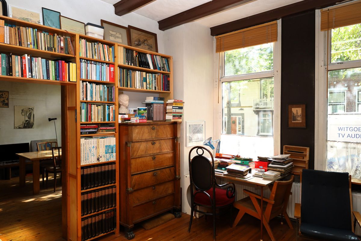Bij binnenkomst via de voordeur betreedt u de ruime woonkamer, met aangrenzend een lichte studeerkamer. Aan de achterzijde bevindt zich de gezellige woonkeuken die direct grenst aan de groene achtertuin. Verder vindt u op de begane grond een ruime hal, praktische bijkeuken, kelder, opbergruimte en een separaat toilet. Via een steeg naast de woning bereikt u de tuin en het gedeelte van de schuur dat bij nummer 6 hoort (de andere helft vd schuur hoort bij 6a), ideaal voor opslag en klusruimte. Het perceel beslaat in totaal 266 m². In de diepe tuin met fruitbomen geniet u bovendien van uitzicht op de Brandaris.