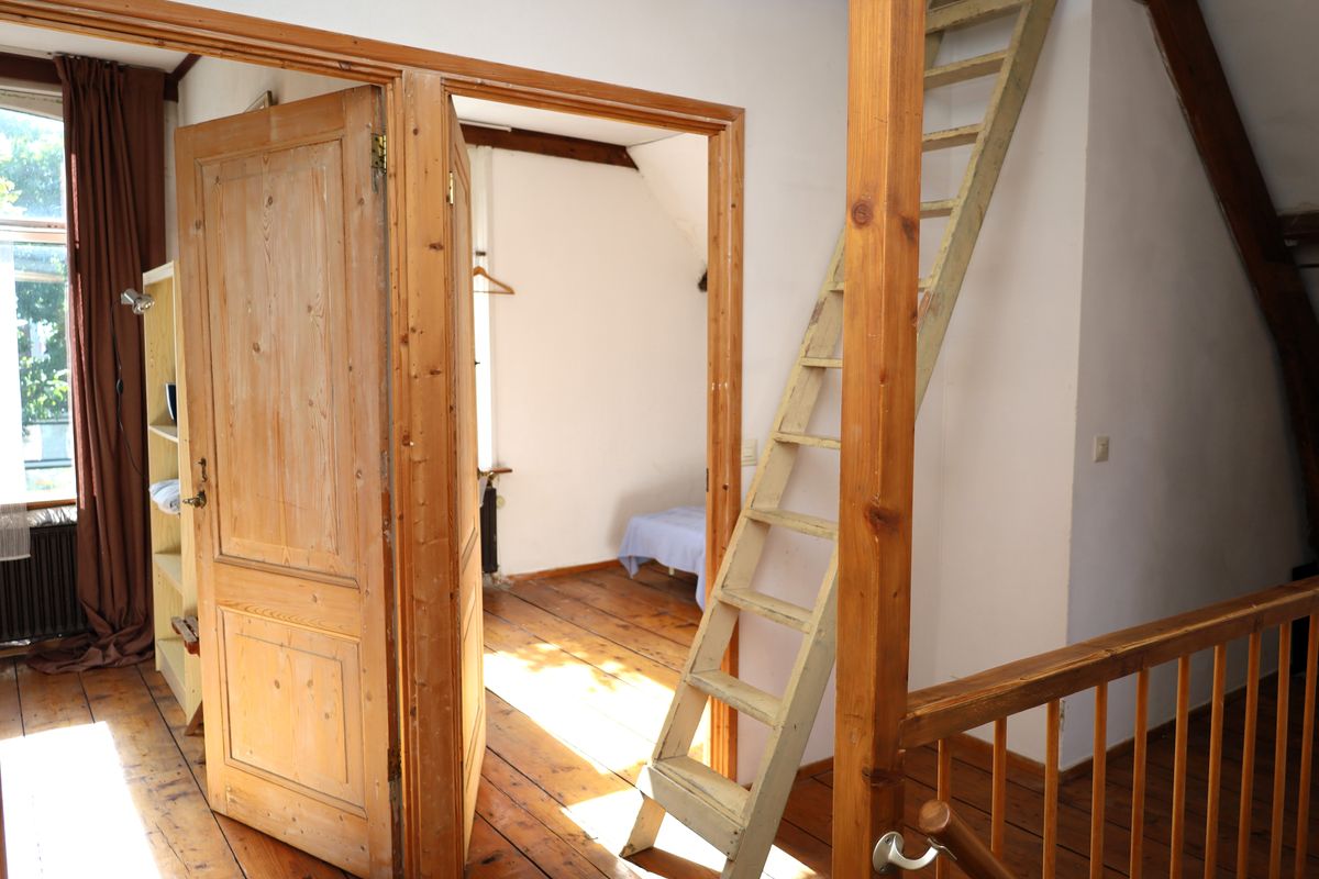 De eerste verdieping beschikt over vier slaapkamers en een badkamer met ligbad, douche, wastafel en toilet. Vanuit één van de slaapkamers is er bovendien de mogelijkheid een dakterras te realiseren. De hoge vensters en het balkenplafond geven de verdieping extra licht en ruimte.