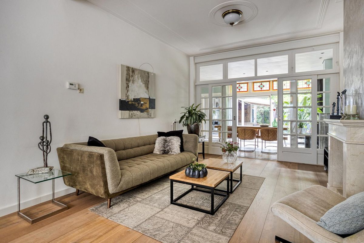 De woonkamer is zo’n plek waar je je meteen thuis voelt. Er is genoeg ruimte voor een gezellige zithoek én een royale eettafel. Dankzij de en suite deuren behoudt de kamer zijn klassieke indeling, terwijl de grote raampartijen zorgen voor veel licht.