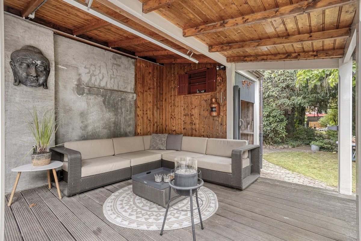 Aan de achterzijde ligt de woonkeuken: een plek waar je niet alleen kookt, maar ook leeft. Vanuit hier loop je zo door naar de veranda, een heerlijke plek waar binnen en buiten samenkomen. Met de terrasverwarming zit je hier zelfs in de winter lekker beschut.