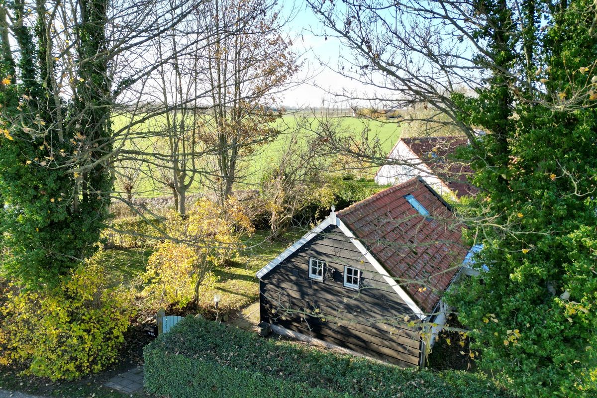 Wat dit dijkhuisje echt bijzonder maakt, is de ligging. Het perceel van 375 vierkante meter ligt iets lager dan de Molenweg zelf, waardoor de woning beschut en zeer privé is gesitueerd. Tegelijkertijd geniet je rondom van vrije zichten over de polders – een uitzicht dat nooit verveelt en dat elke dag een gevoel van rust en ruimte geeft.