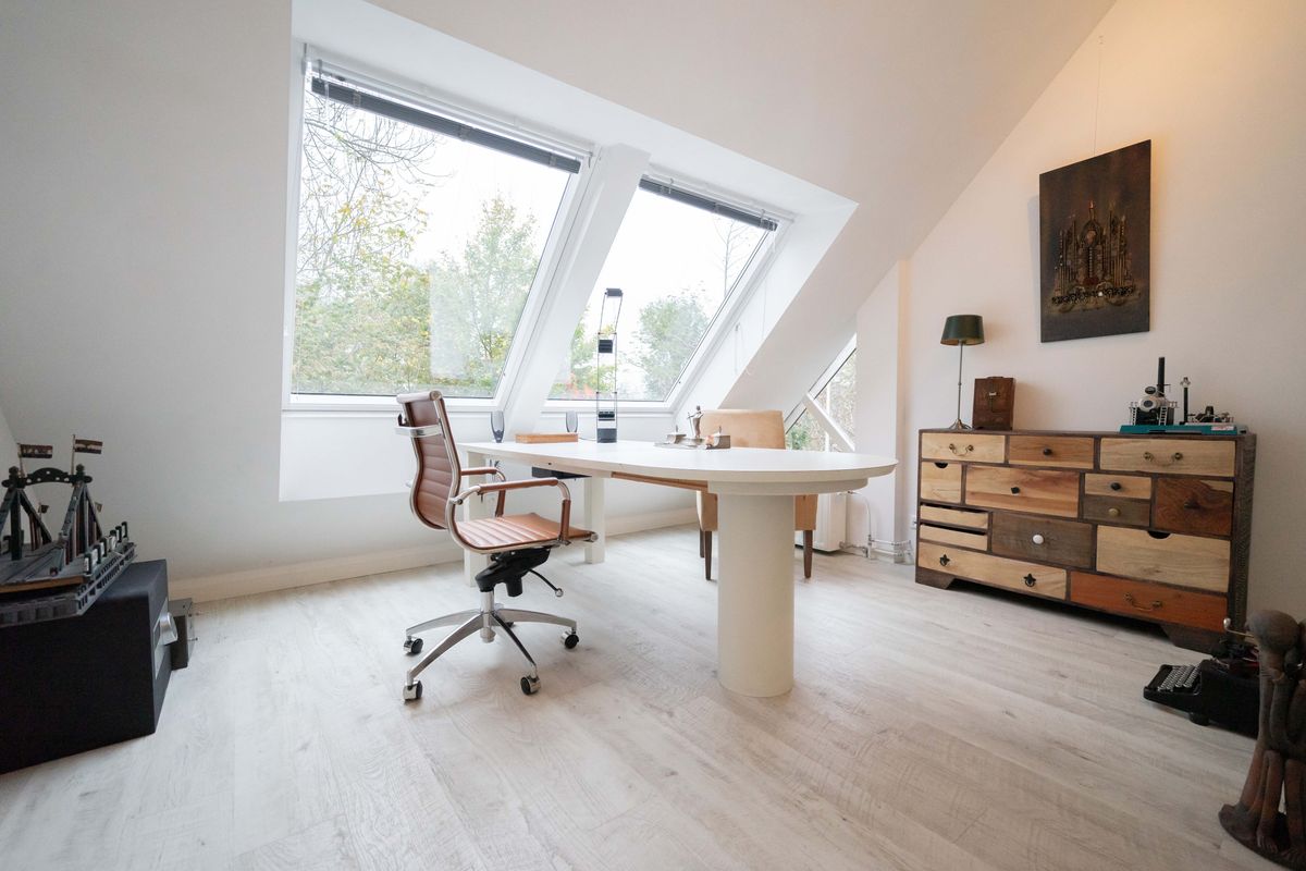 Op deze verdieping vindt u de vijfde en zesde slaapkamer. In 2017 is er een grote dakkapel geplaatst waardoor beide slaapkamers meer ruimte hebben gekregen. Beide kamers hebben uitzicht op openbaar groen en de vijver. De kamers op deze verdieping zijn ook perfect te gebruiken als thuiswerkplek. De cv-installatie is geplaatst in een eigen ruimte.