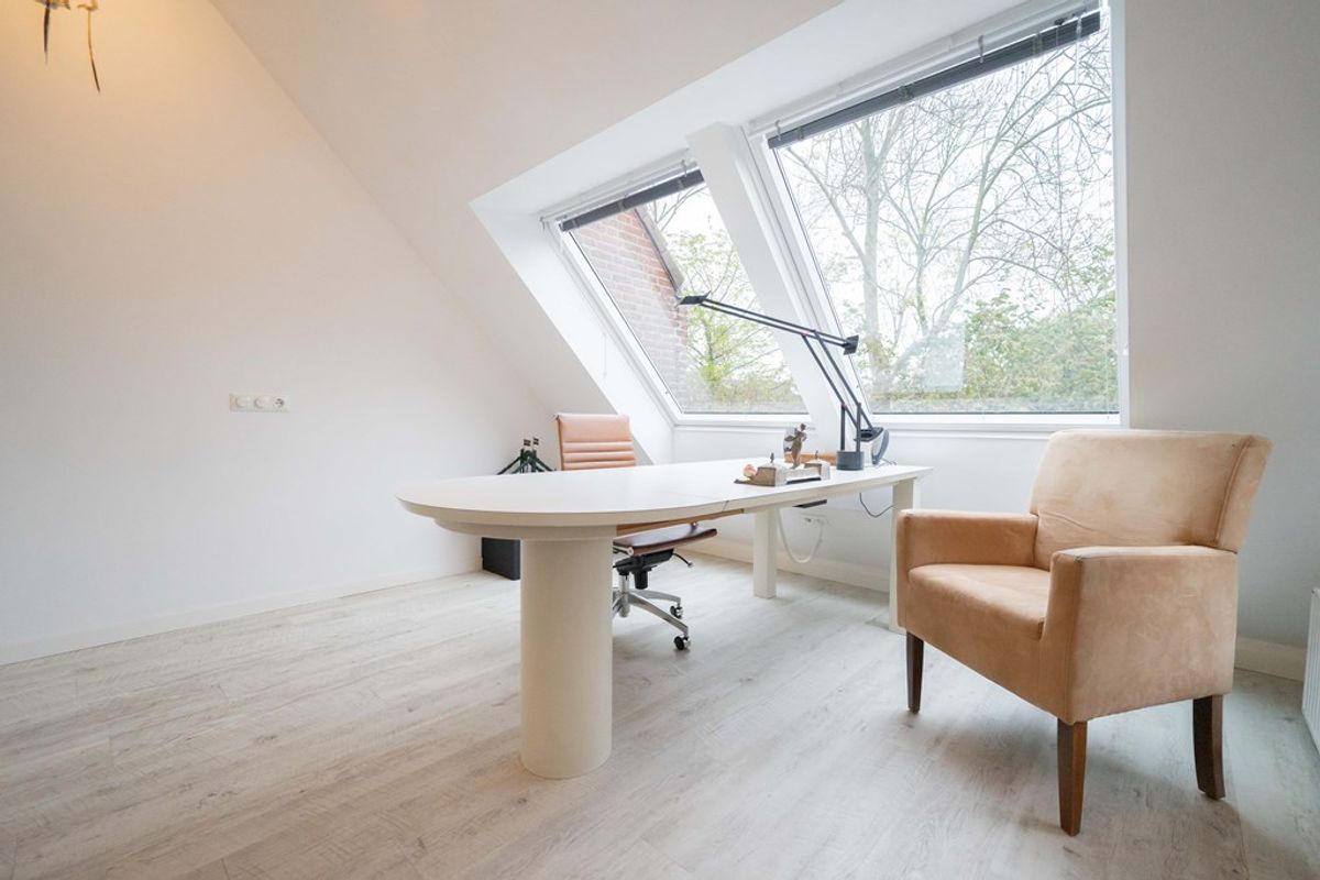 Op deze verdieping vindt u de vijfde en zesde slaapkamer. In 2017 is er een grote dakkapel geplaatst waardoor beide slaapkamers meer ruimte hebben gekregen. Beide kamers hebben uitzicht op openbaar groen en de vijver. De kamers op deze verdieping zijn ook perfect te gebruiken als thuiswerkplek. De cv-installatie is geplaatst in een eigen ruimte.