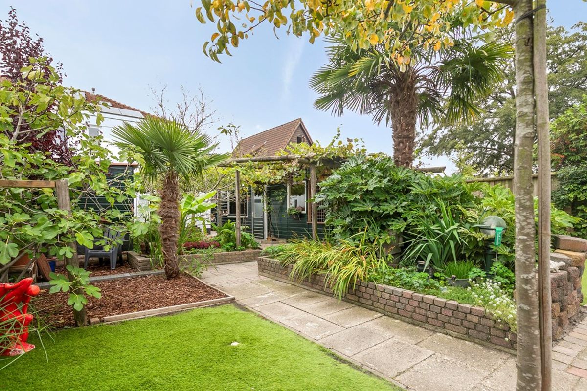 De tuin is een van de grootste pluspunten van de woning. De voorzijde beschikt over een brede oprit met een laadpunt voor een elektrische auto. De achtertuin is diep, groen en zeer sfeervol ingericht met meerdere terrassen, volwassen beplanting, fruitbomen en zelfs palmbomen voor een mediterrane sfeer. De tuin biedt volop privacy en ruimte om te ontspannen, te spelen of heerlijk buiten te eten.