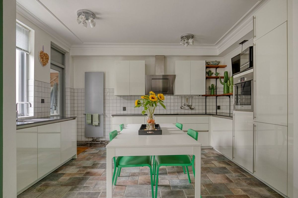 De luxe woonkeuken is modern afgewerkt en uitgerust met inbouwapparatuur. Hier is alle ruimte om uitgebreid te koken, gezellig te borrelen of samen te ontbijten aan de eettafel. Dankzij de open verbinding met de woonkamer is het een ideale plek om met familie en vrienden samen te zijn.