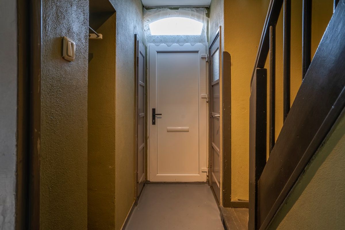 Via de hal bereikt u de kelder, een praktische ruimte met witgoedaansluitingen, extra opslagmogelijkheden en de watermeter – ideaal voor een georganiseerd en efficiënt huishouden.