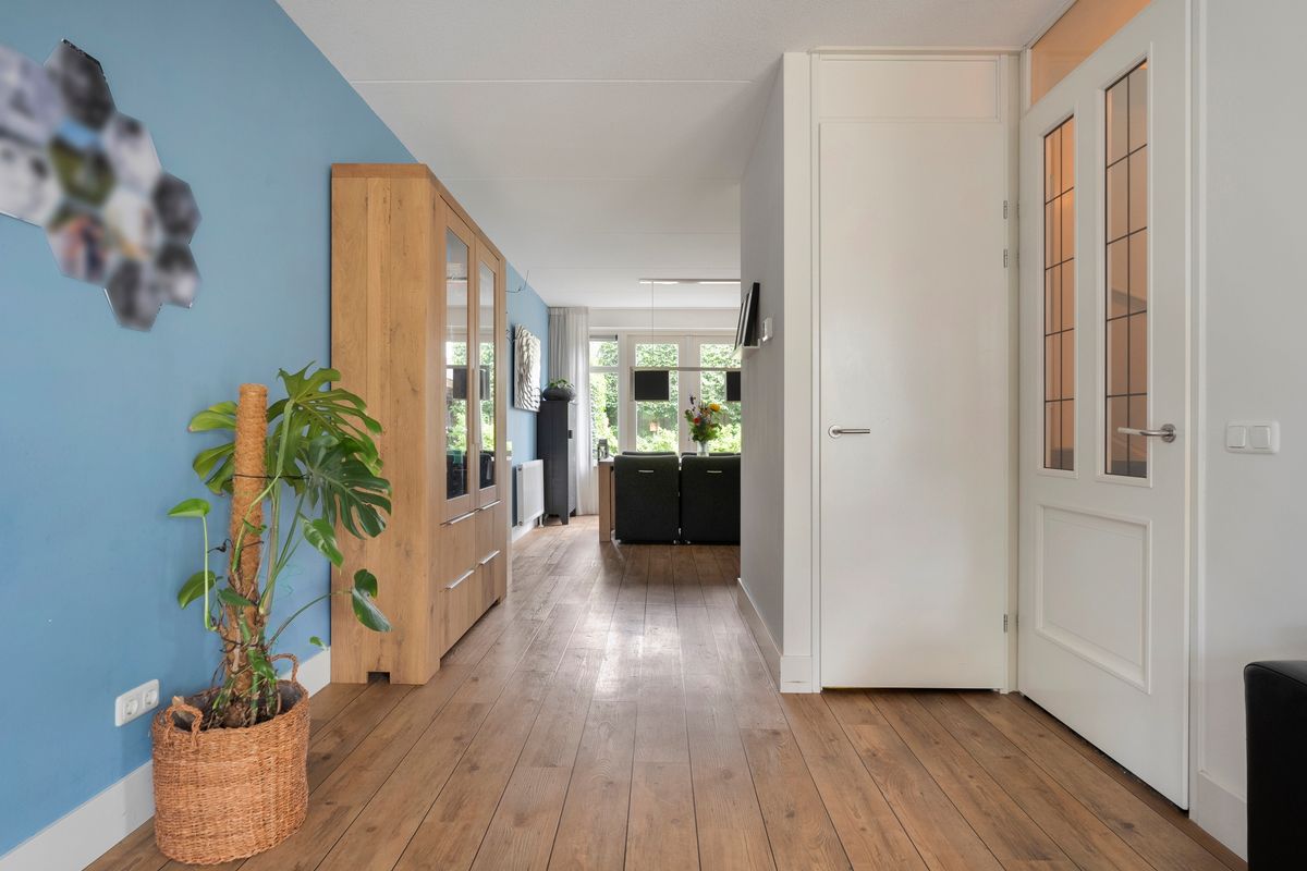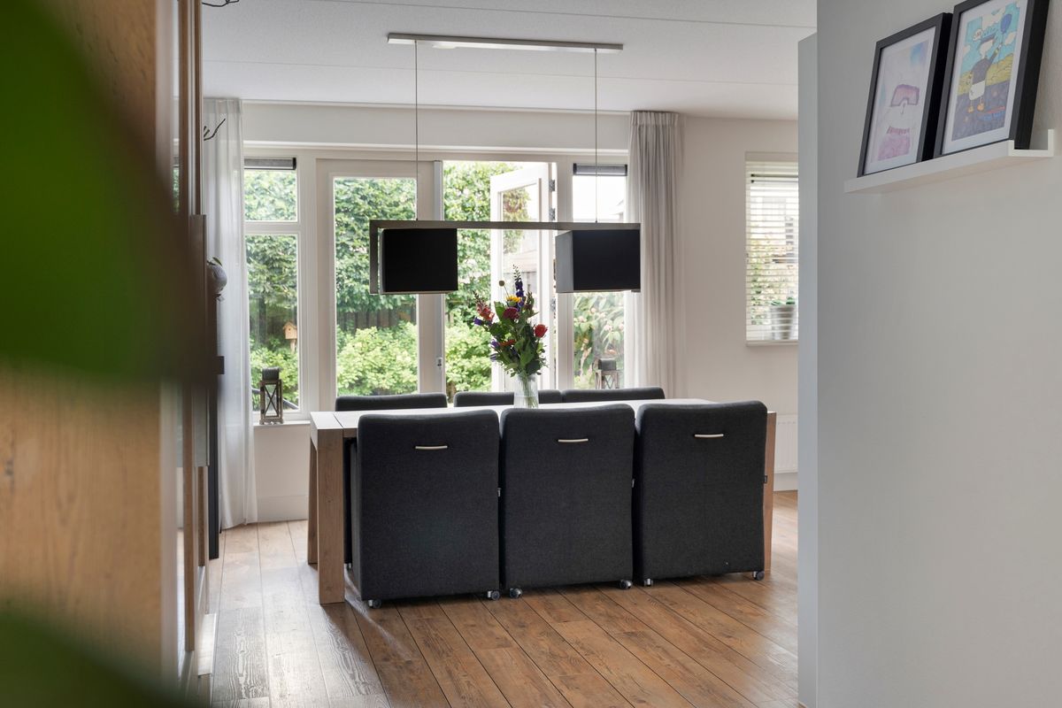 Een van de eerste dingen die je zal opvallen is de indrukwekkende uitstraling. Het huis is uitgebouwd, waardoor er binnen lekker veel leefruimte is. Door het hele huis vind je een strakke afwerking – alles is netjes en modern. Stap je binnen, dan voel je meteen de ruimte én het licht dankzij de grote raampartijen en slimme indeling. Geen zin in klussen? Hoeft ook niet – je kunt hier direct je spullen neerzetten!