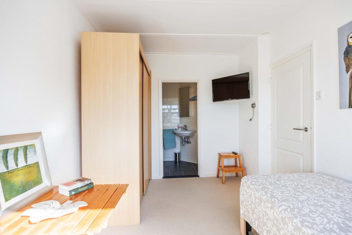 De woning beschikt over een onderhoudsarme tuin rondom, een groot terras en een vrijstaande houten berging met carport. Deze berging is bovendien voorzien van een kamer met raam en elektra – een perfecte plek voor een praktijkruimte, kantoor of hobby. Parkeren kan royaal op eigen afgesloten terrein.