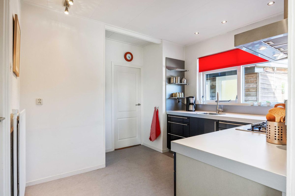 Entree aan de voorzijde in ruime hal met meterkast, garderobe, trapopgang en toilet (hangend closet en fonteintje) en toegang naar de slaapkamer en keuken. De slaapkamer is voorzien van een betegelde badkamer met inloopdouche en wastafel. De moderne, gesloten hoekkeuken is voorzien van een 5-pits gaskookplaat en afzuigkap en biedt doorgang naar zowel de woonkamer als de bijkeuken. De lichte woonkamer heeft grote raampartijen, een zit- en eetgedeelte en een schuifpui naar het terras.. In de bijkeuken is praktische bergruimte, de opstelplaats voor witgoed en cv-installatie en een deur naar de tuin.