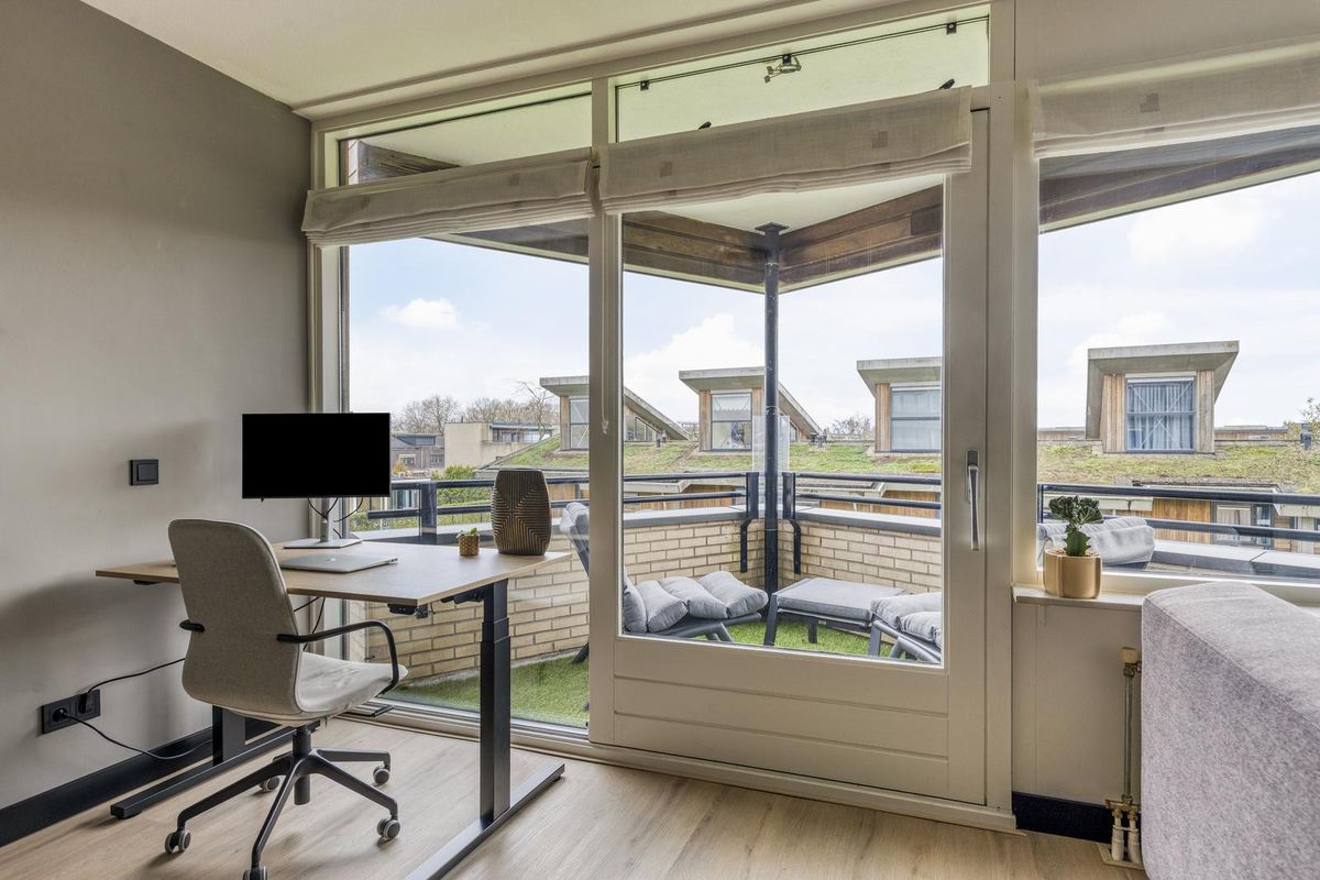 Het balkon op het zuiden is een heerlijke plek om te ontspannen. Dankzij de overkapping kun je hier bijna het hele jaar door genieten van je eigen buitenruimte. Lekker rustig gelegen, met fijne privacy.