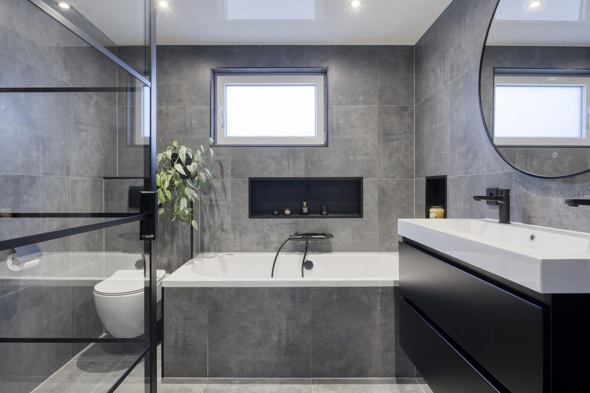 - Badkamer is compleet met een ligbad, dubbele wastafel met badmeubel, zwevend toilet, douche, een verwarmde spiegel, (elektrische) vloerverwarming, mechanische ventilatie en een designradiator